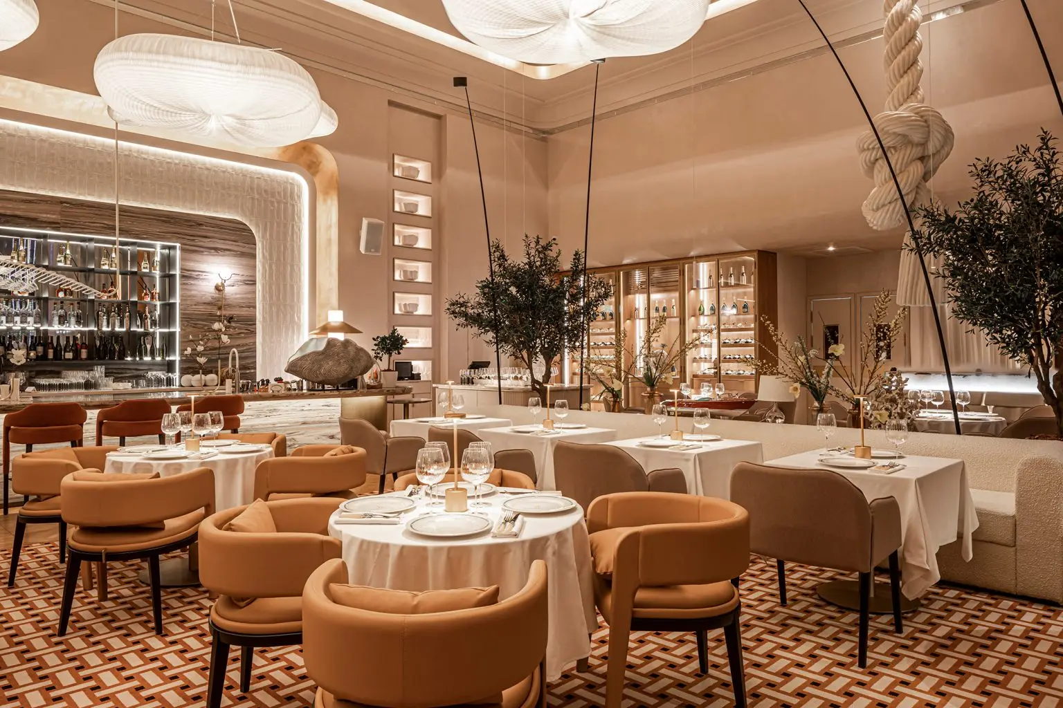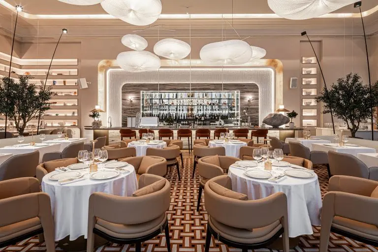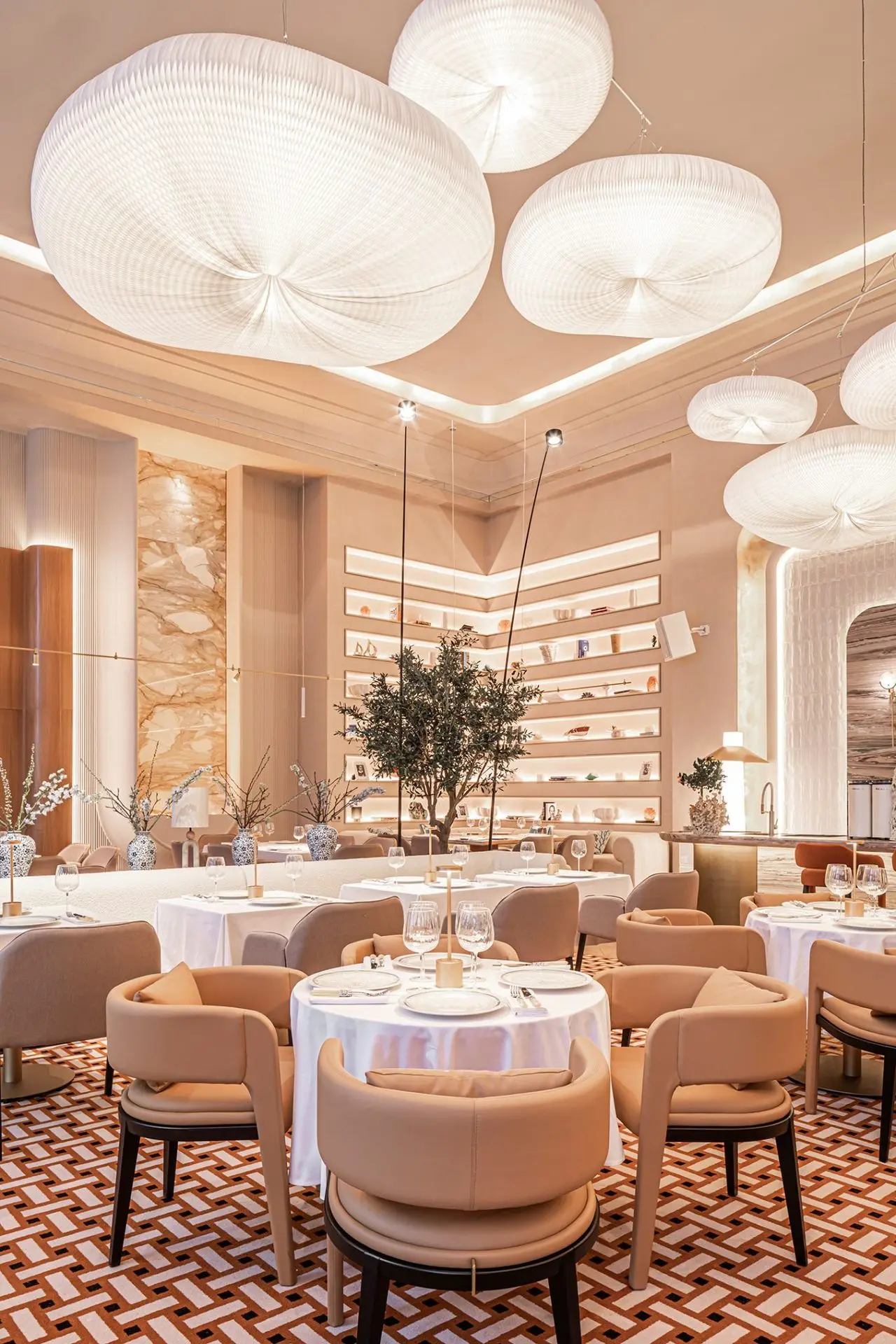 Inspired by the Mediterranean, we chose a creamy color palette that gives the impression of a tropical climate outside. The walls are heated to 50 degrees to further enhance this effect. As you explore the interior, you will notice the luxurious terrazzo tiles laid out in a special pattern, which remind you of a luxury Hermes boutique.