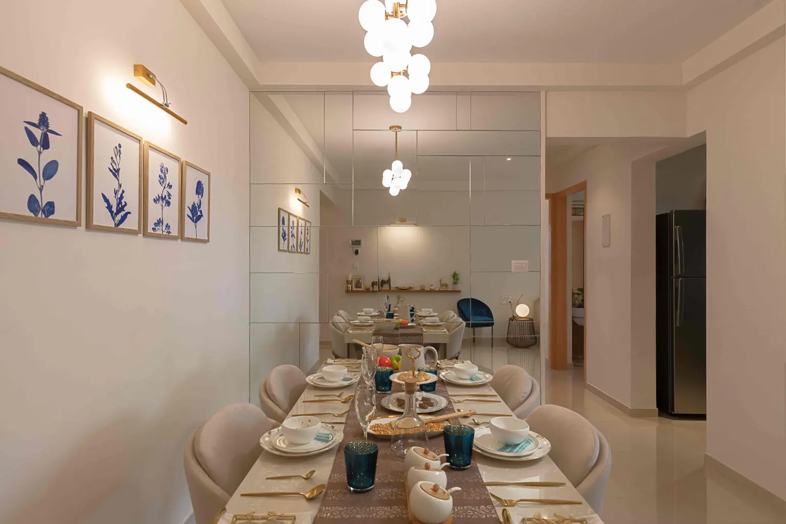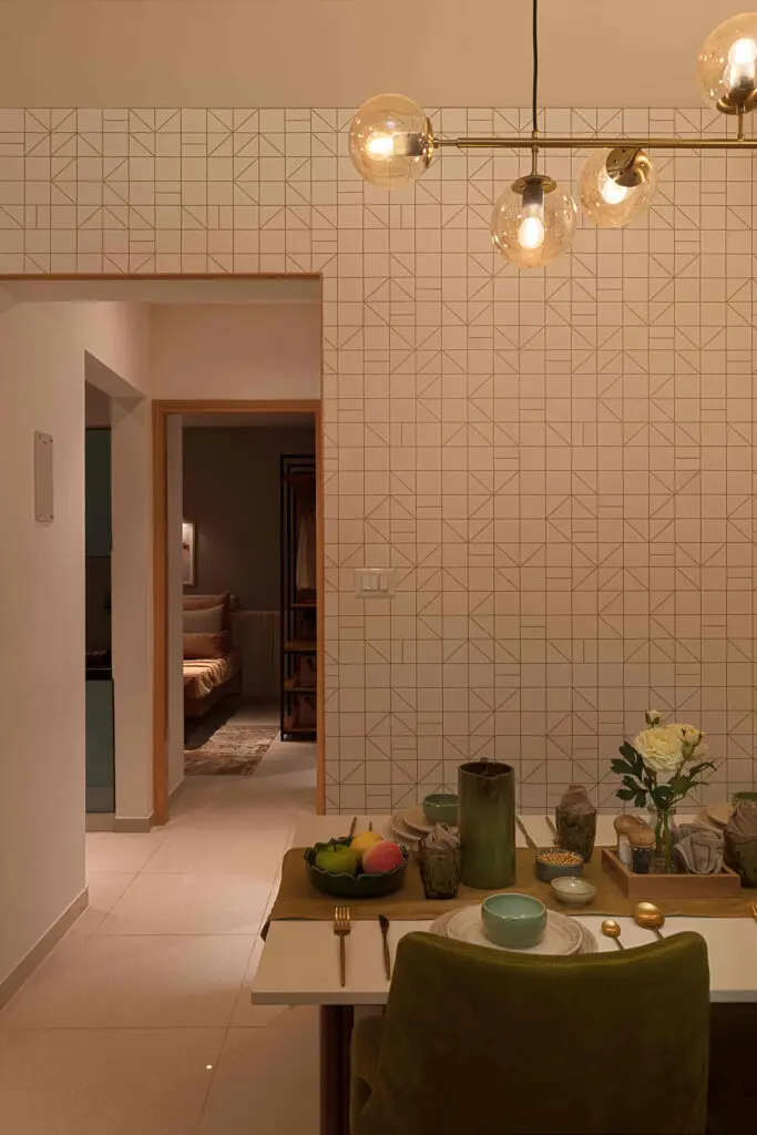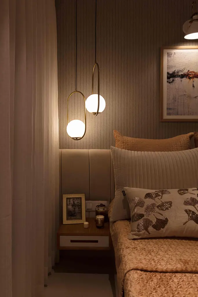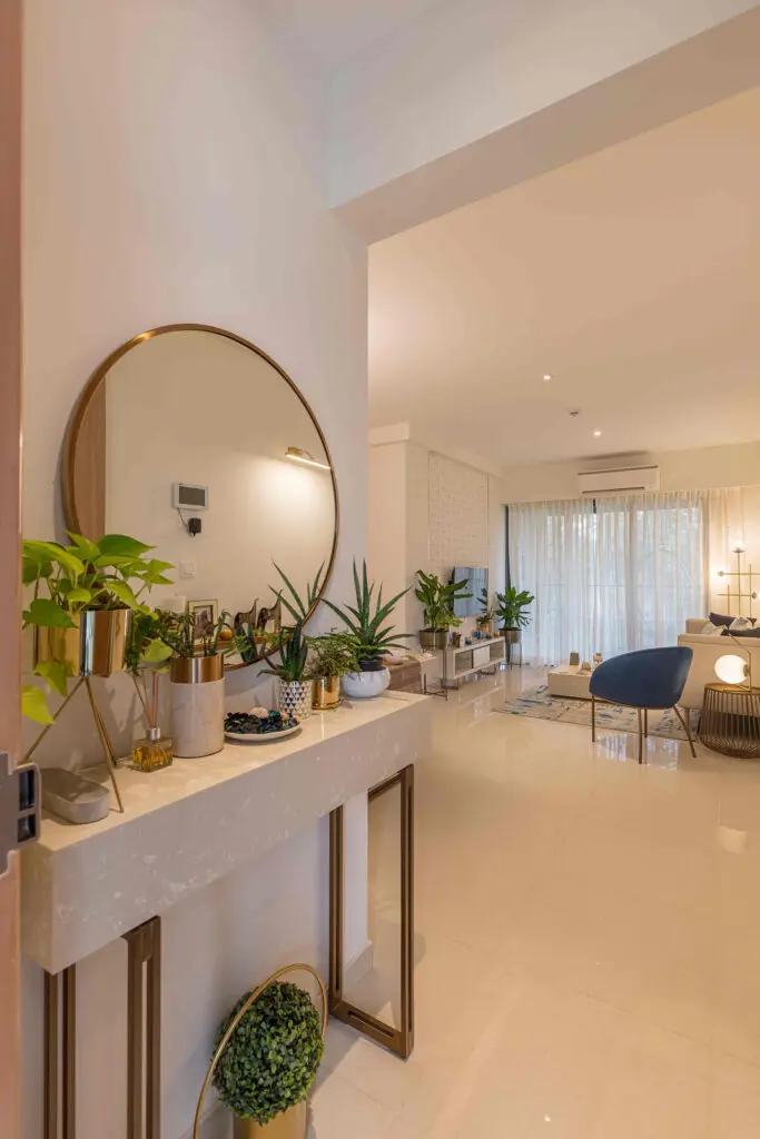 Decorative lights, mirror paneling and carefully curated accessories coupled with indoor plants not only add to the opulence but also enlivens the space giving it a very homely touch.