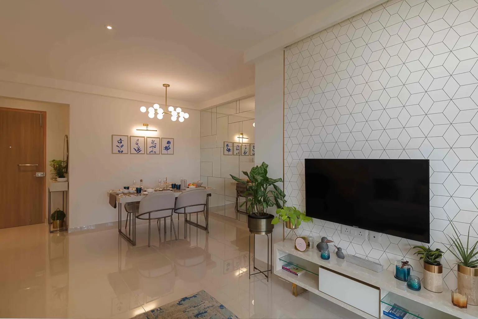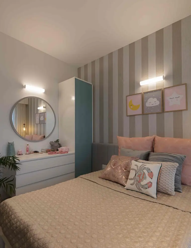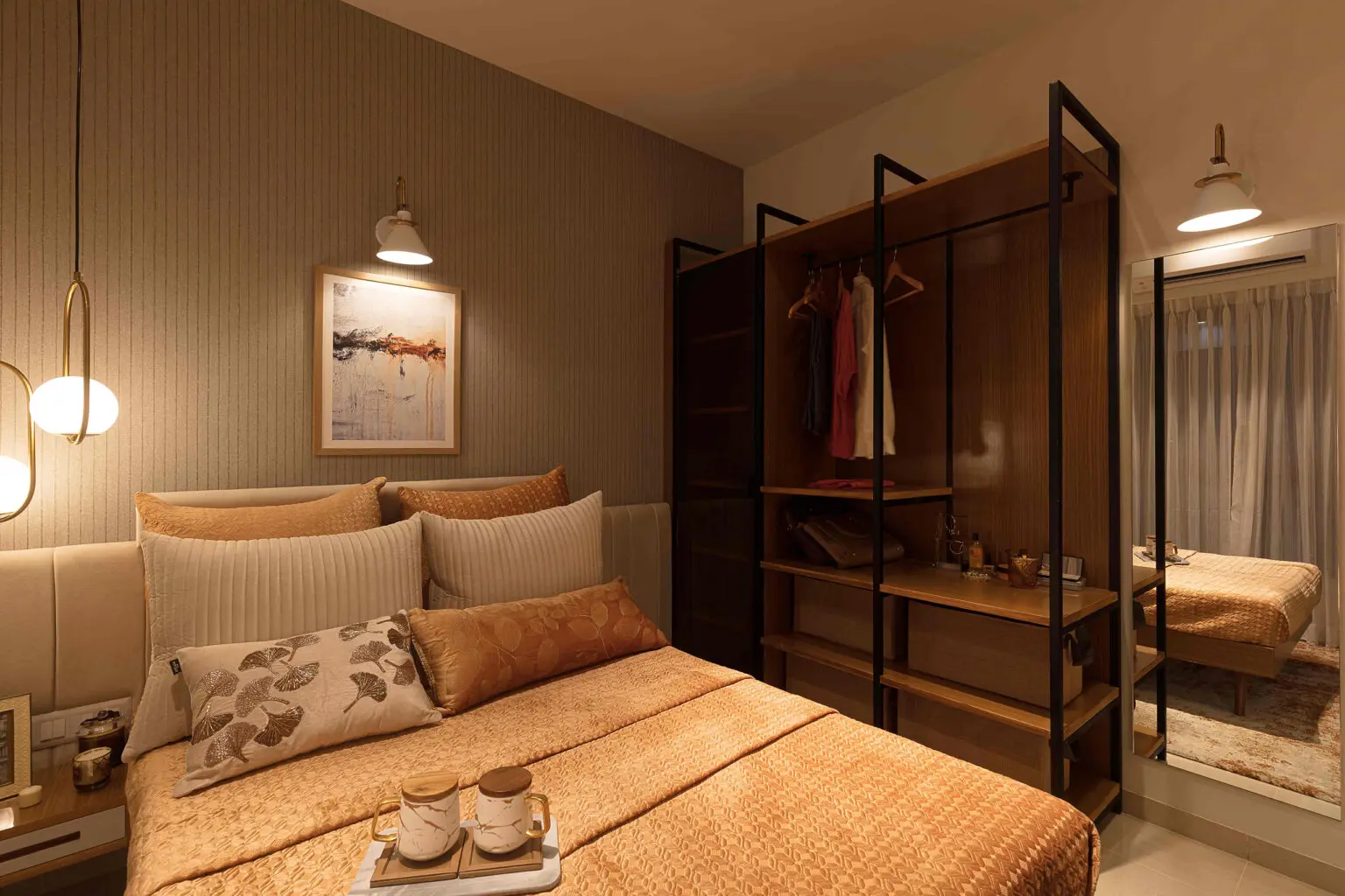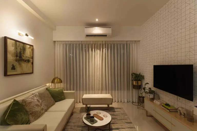 Decorative lights, mirror paneling and carefully curated accessories coupled with indoor plants not only add to the opulence but also enlivens the space giving it a very homely touch.