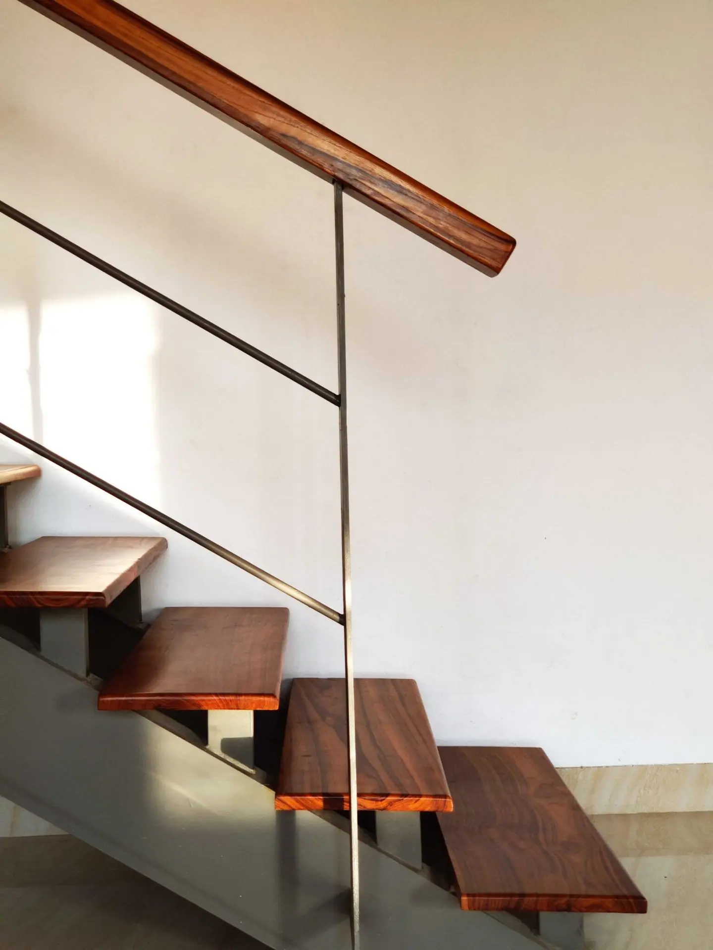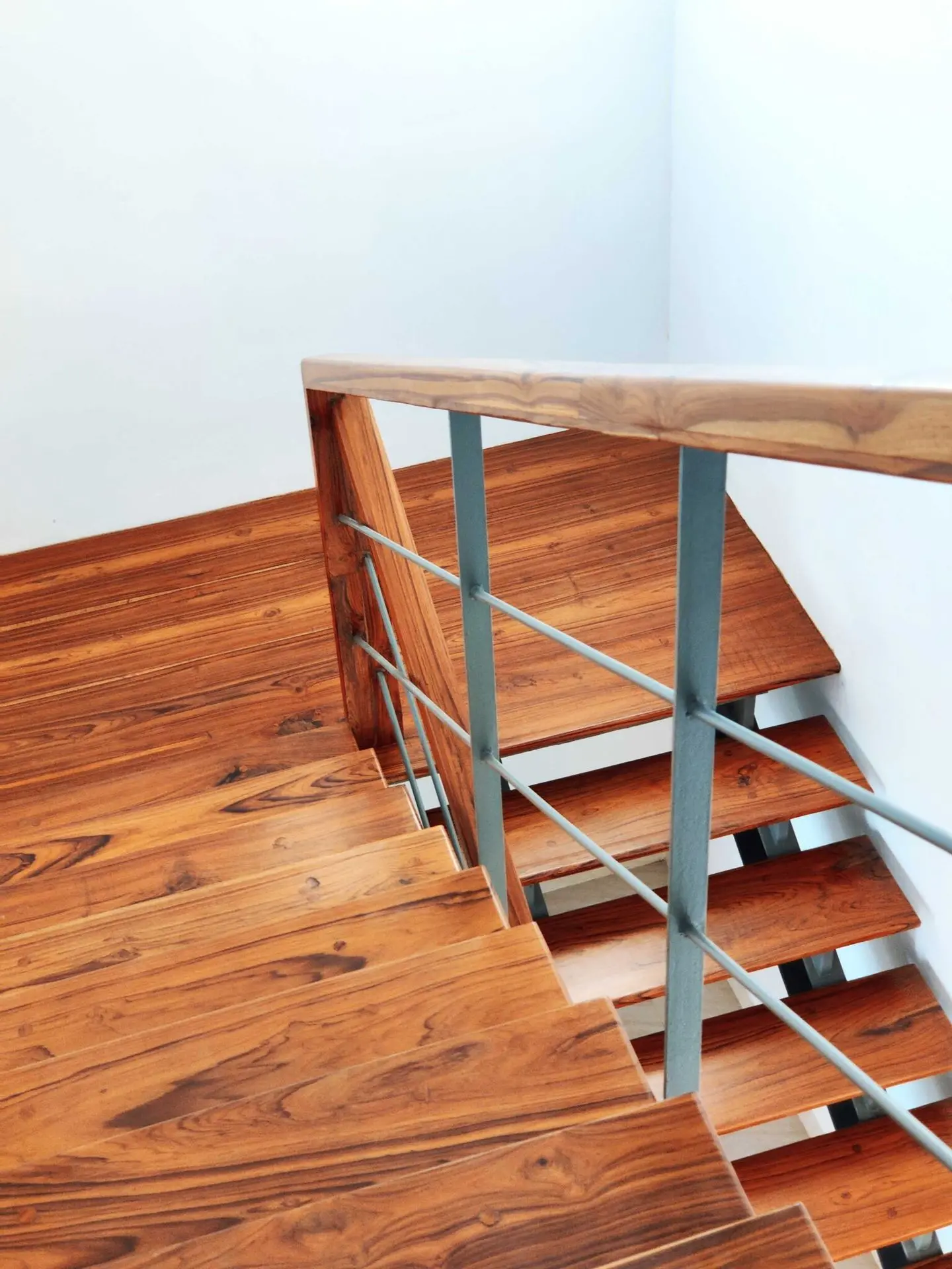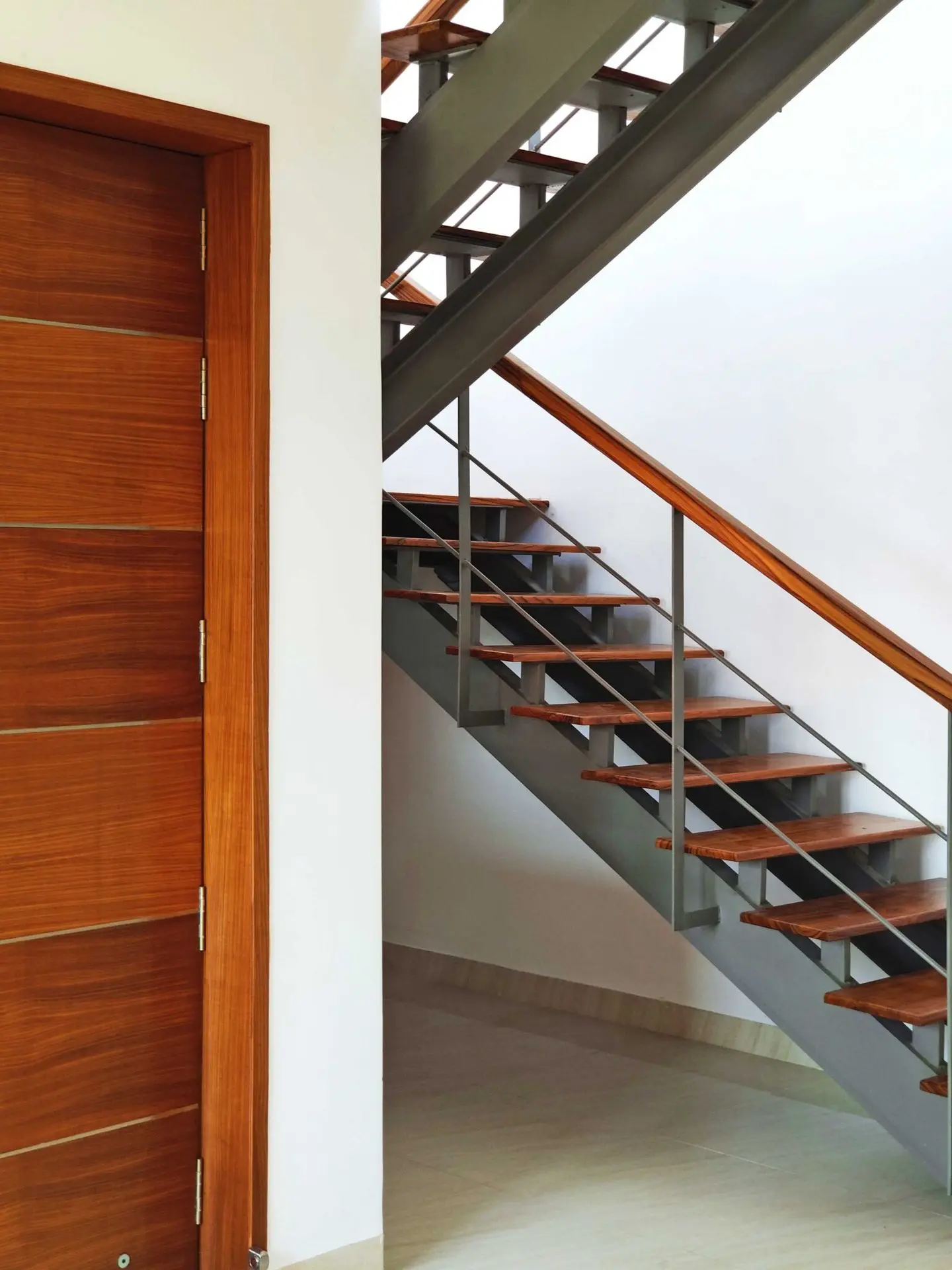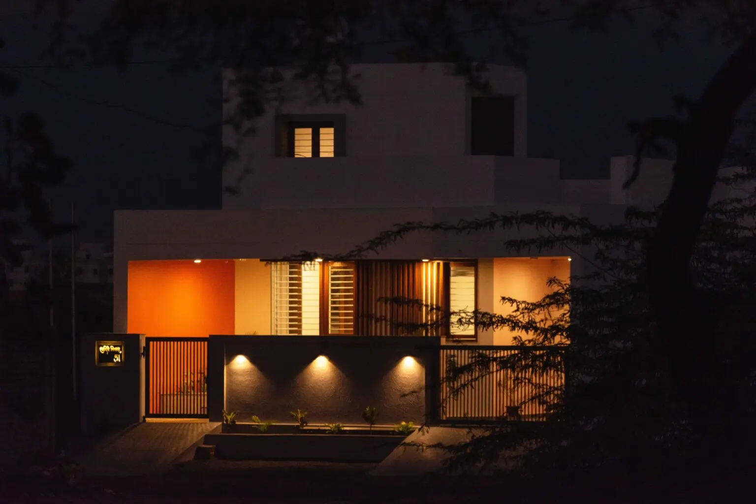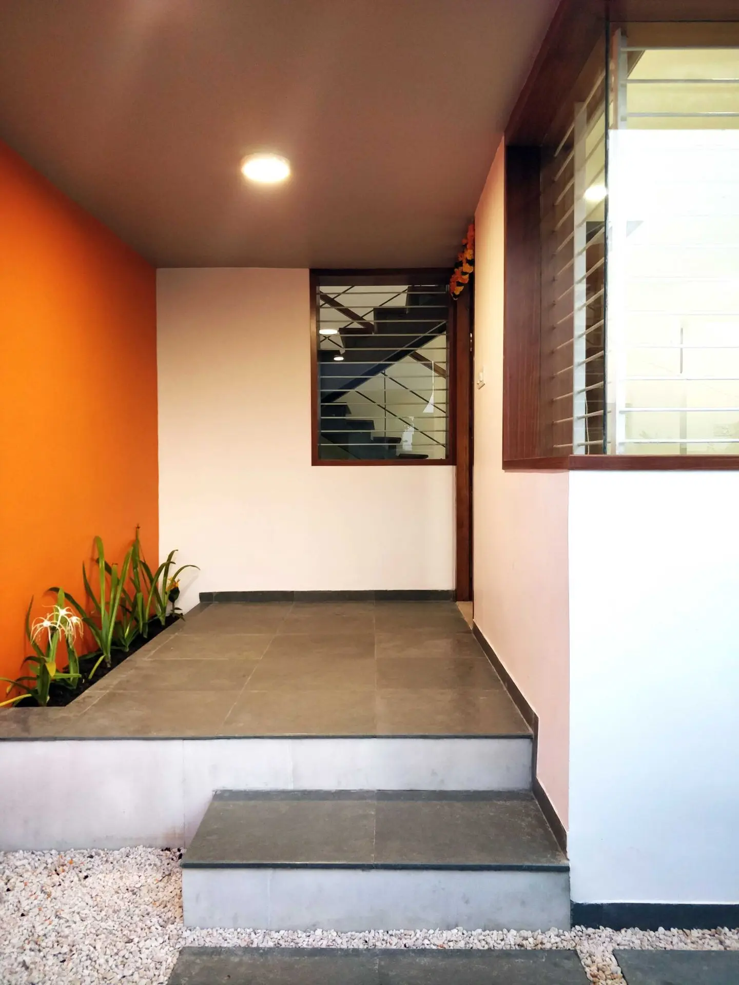 The wood used in the front elevation to create vertical louvers, windows and fabricated staircase brings a touch of luxury to the house.