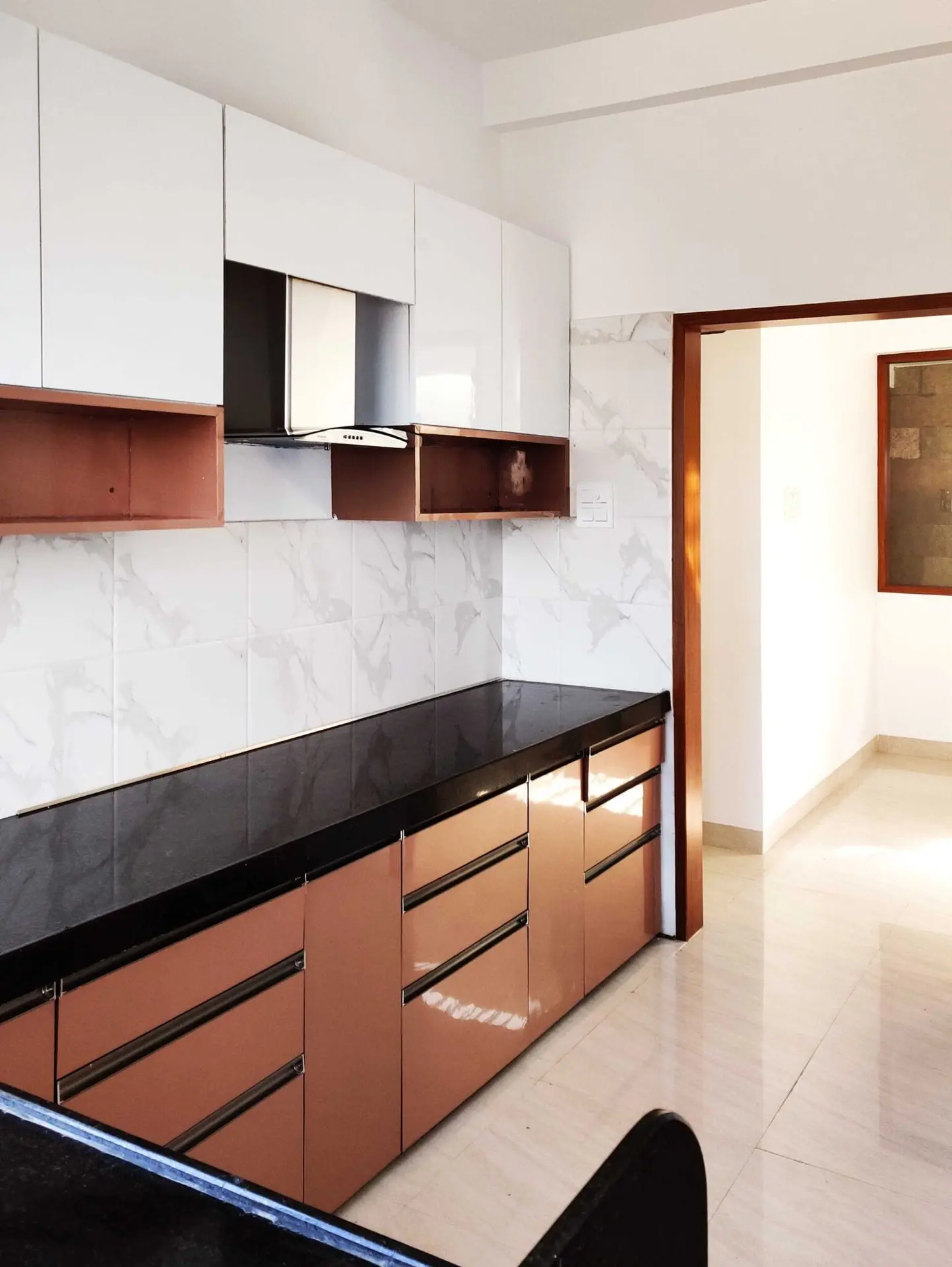 One is the extroverted zone, comprising of the entrance foyer, living and dining area looking towards the street. The idea was to create a visual connectivity amongst the spaces looking towards the street to create a sense of bigger spatial volume. The other is the introverted zone comprising of the two bedrooms.