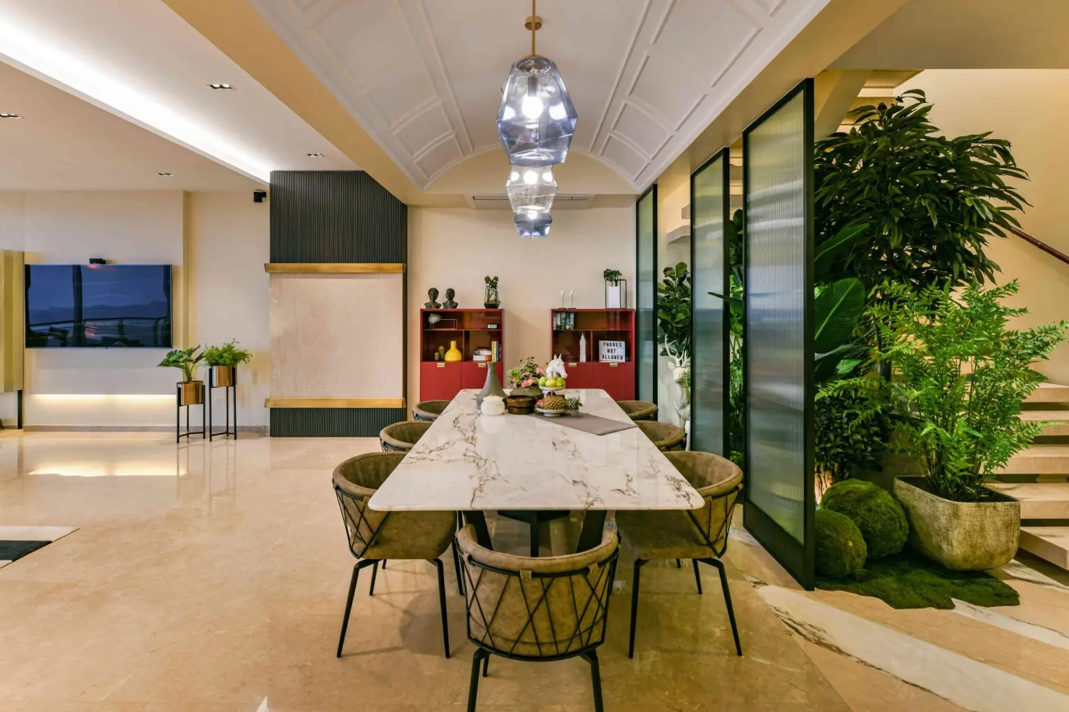 The entire penthouse has an eclectic design approach. Though each room has been predominantly done up in a style; the same has been adapted to evolve as per the user.