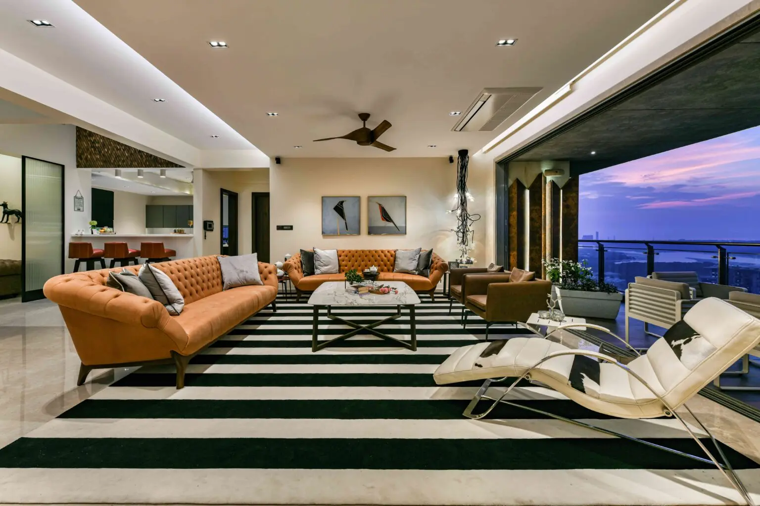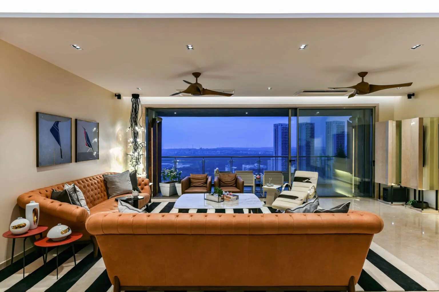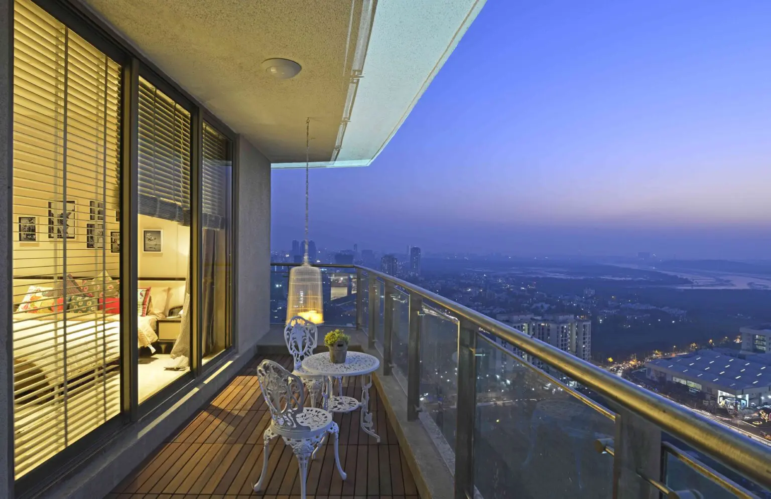 A long window opening spilling over into the balcony forms the extension of the living room.