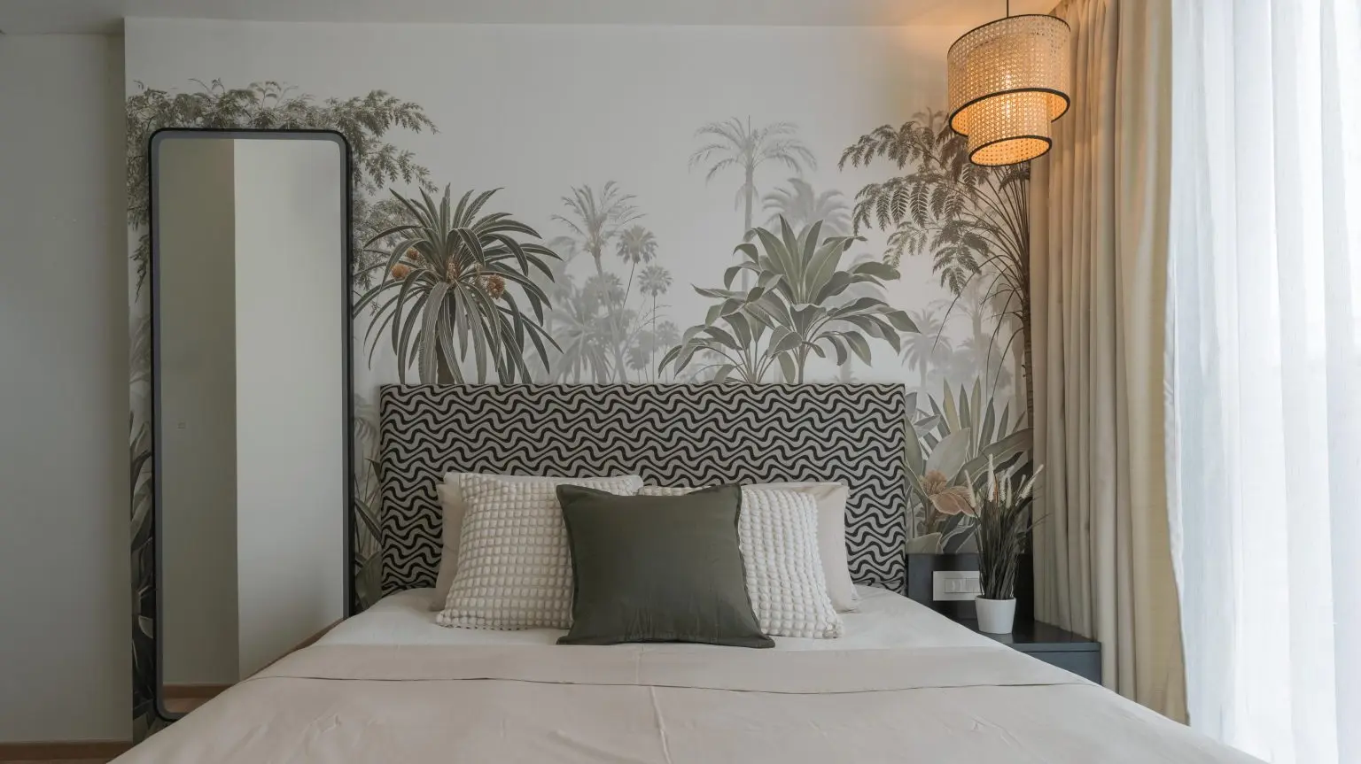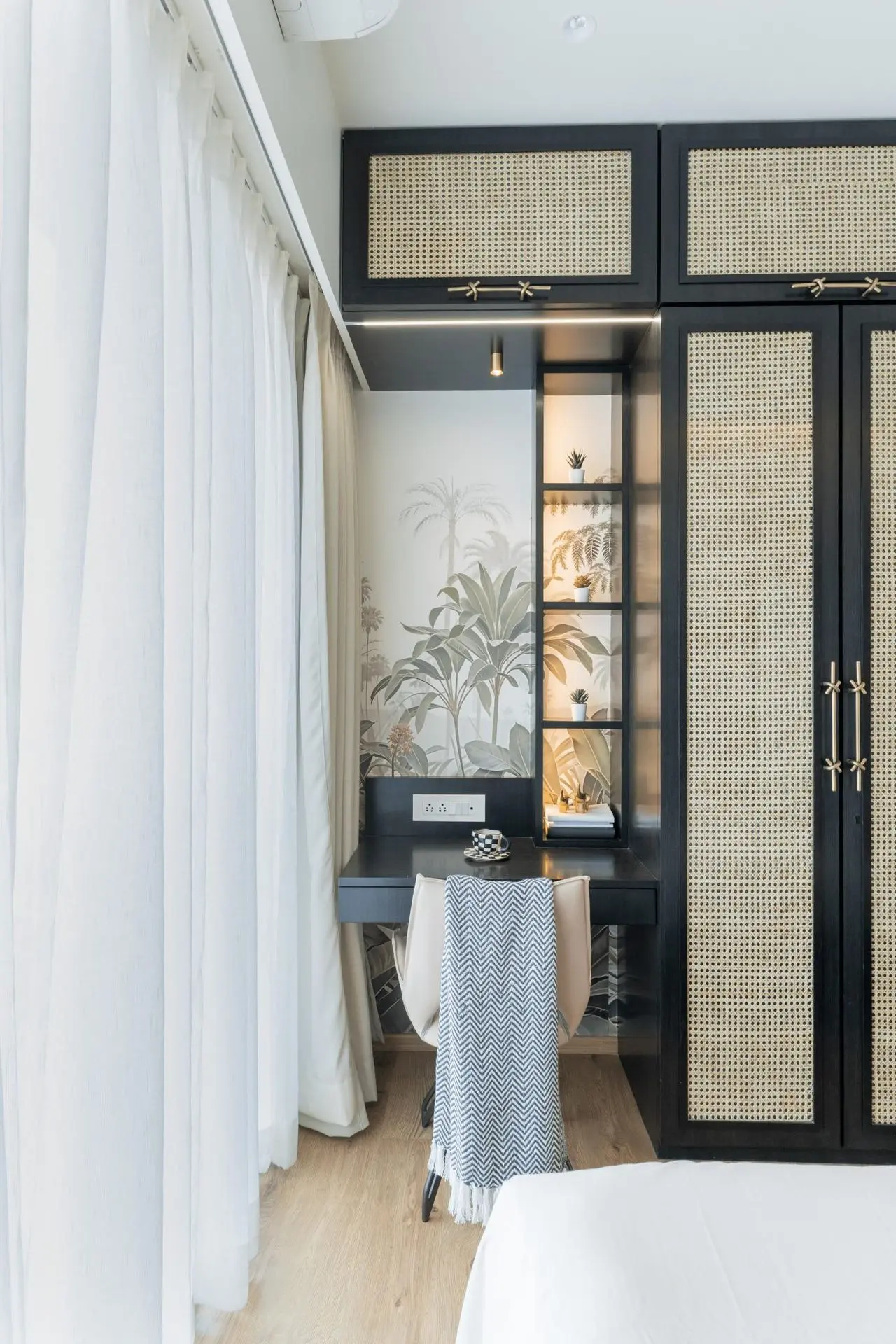 Natural tropical elements come alive through black veneer accents, cane detailing, and organic touches that infuse the space with a breezy, nature-inspired vibe.