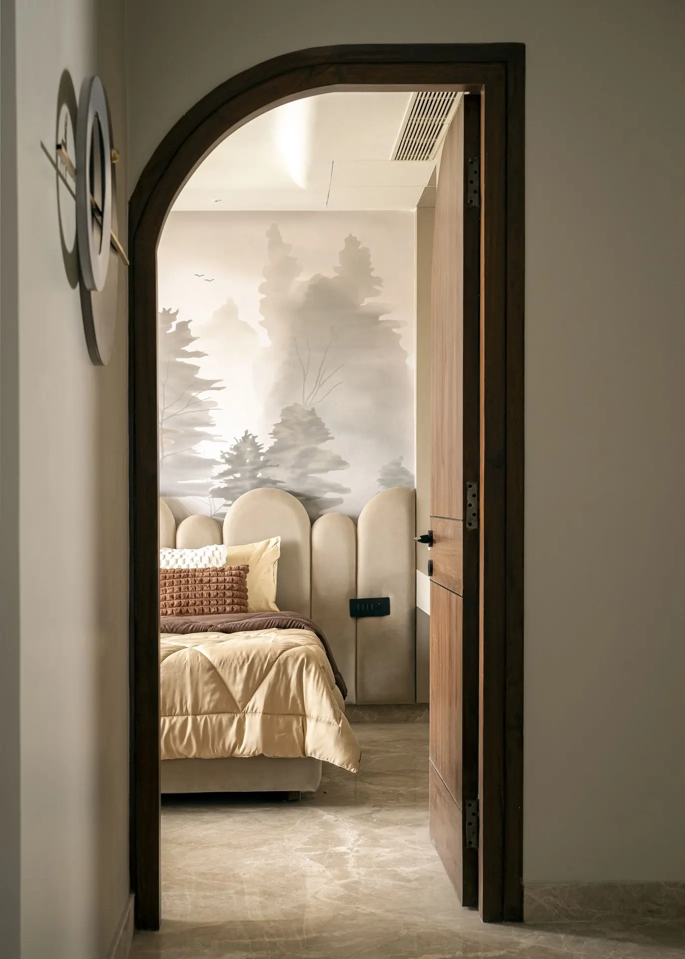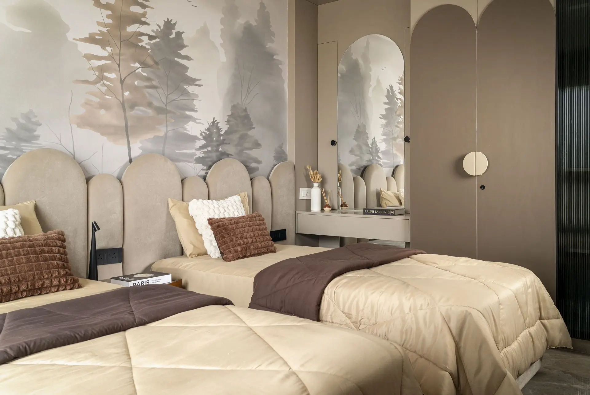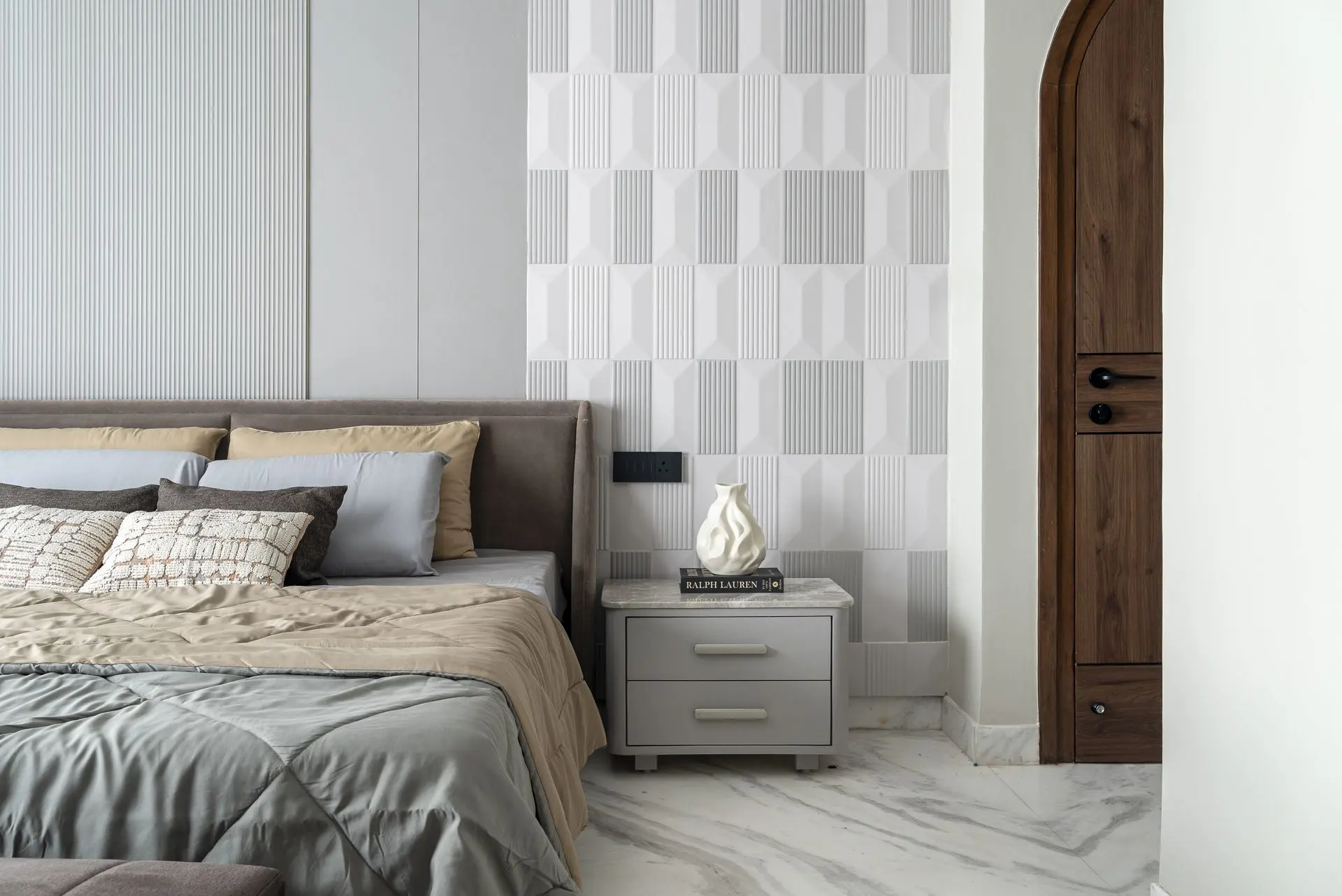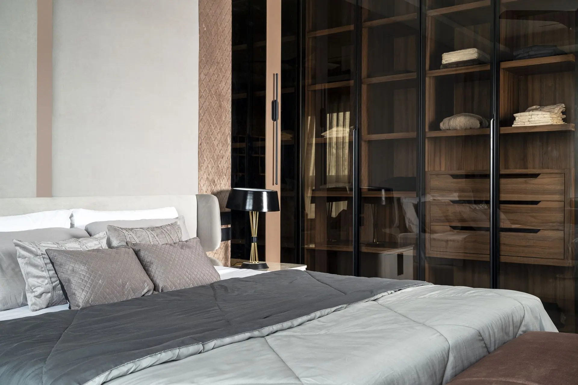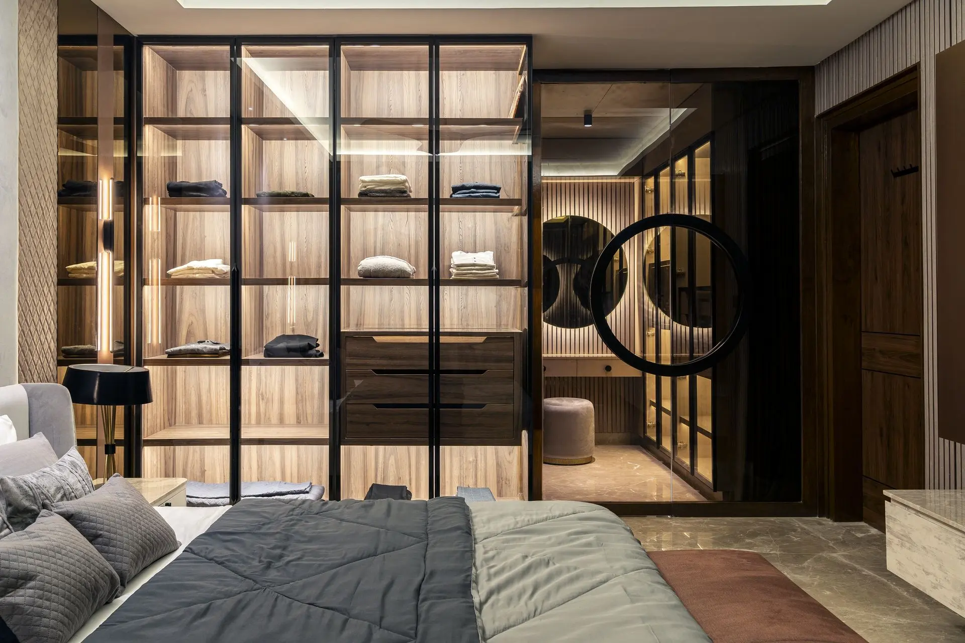 Bedrooms follow a clean, linear design language, exuding a sense of understated richness. Thoughtful detailing ensures the spaces feel composed and visually light.