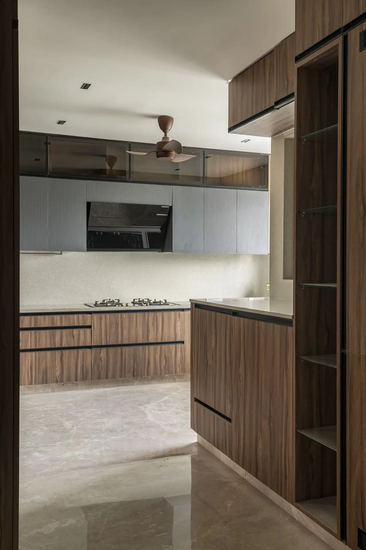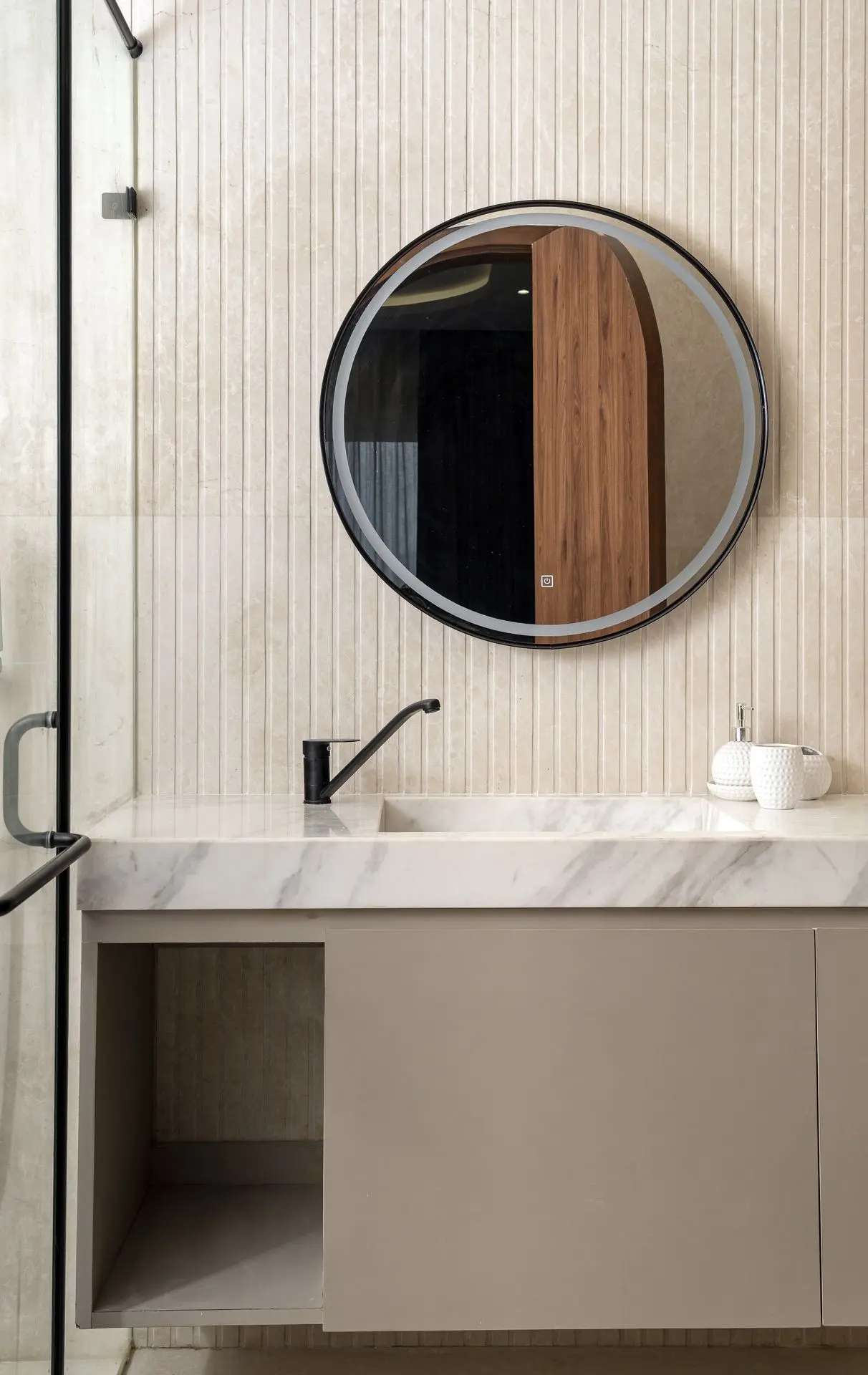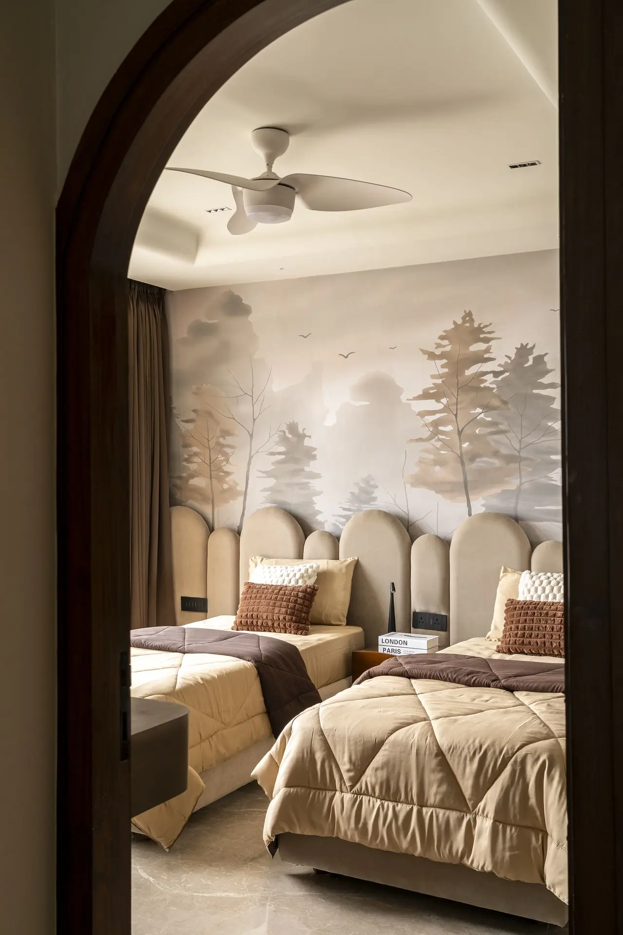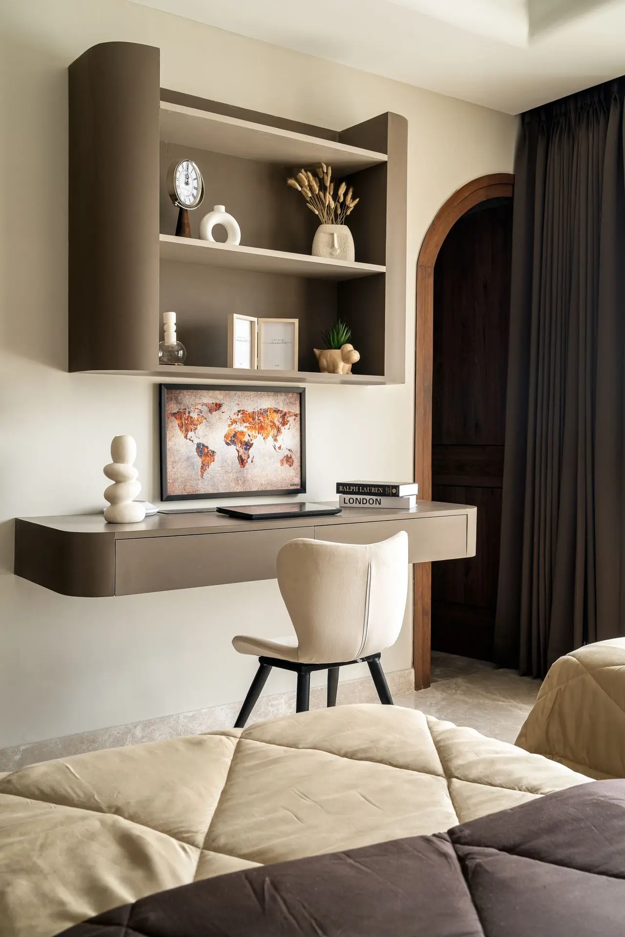 Bedrooms follow a clean, linear design language, exuding a sense of understated richness. Thoughtful detailing ensures the spaces feel composed and visually light.