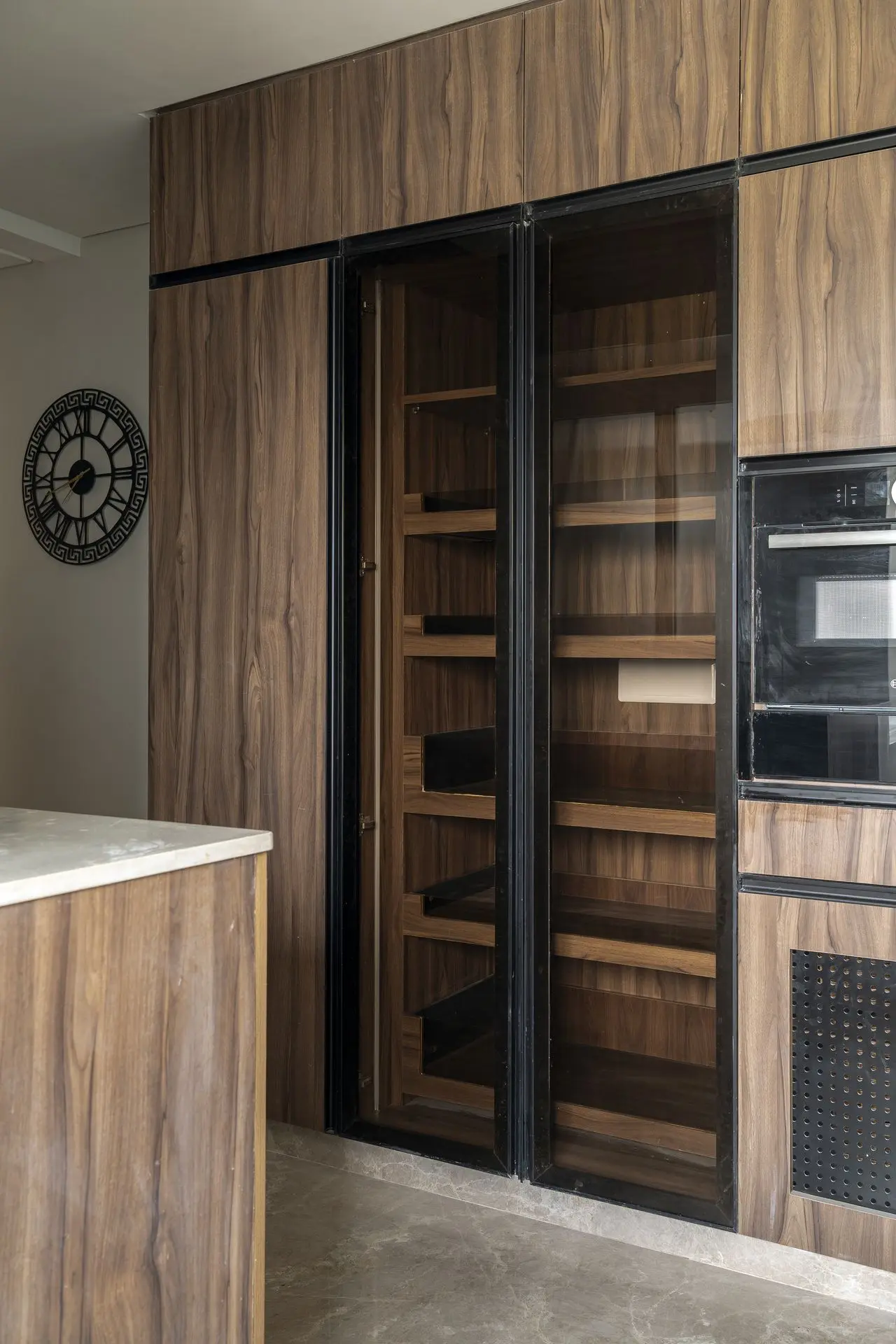 Smart, integrated storage plays a key role in keeping surfaces clear, reinforcing the kitchen’s clean and functional aesthetic. Every element is designed to enhance ease of use without compromising on style.