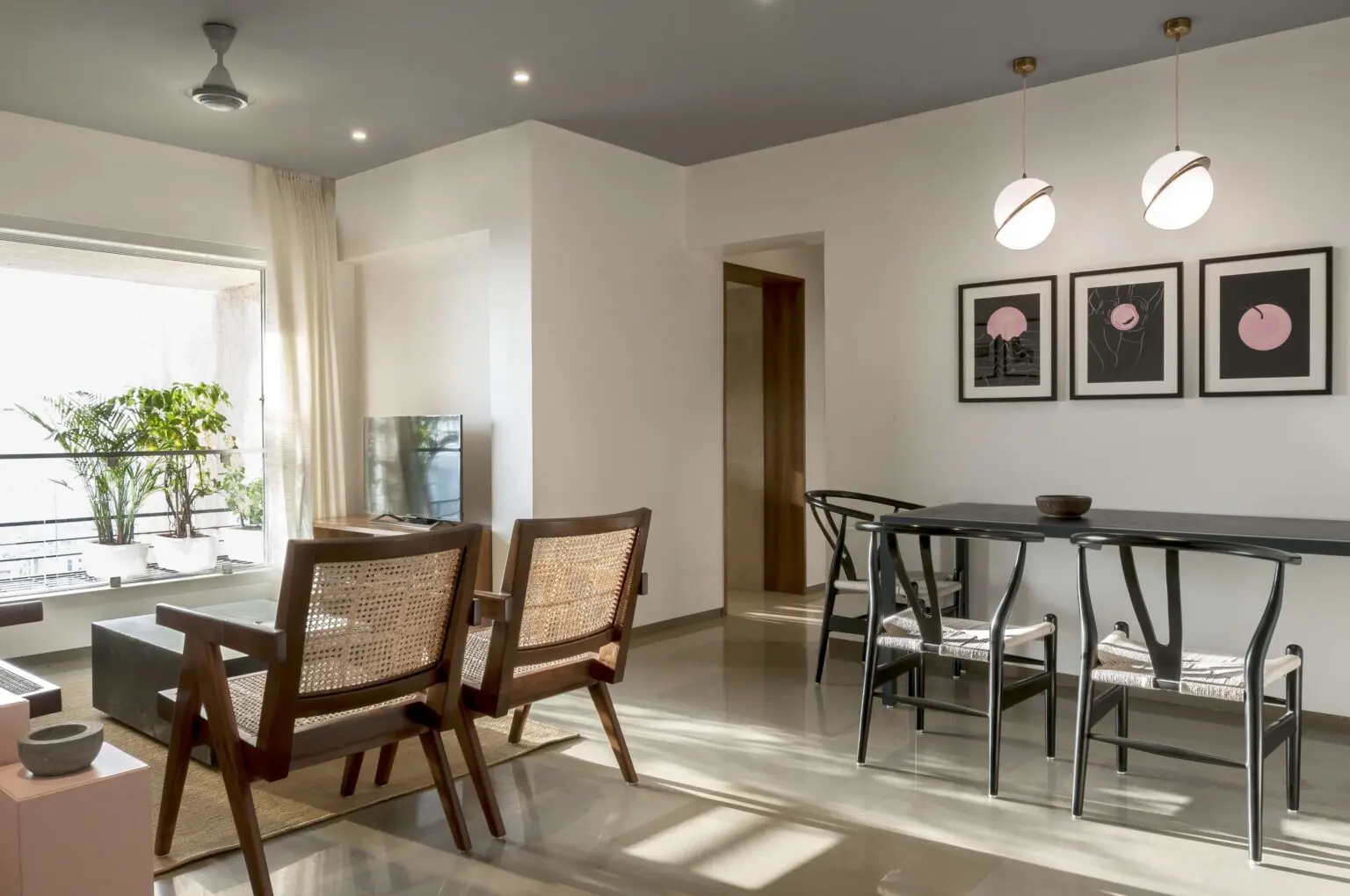 Its furnished with a combination of bespoke hand crafted pieces and iconic mid-century pieces designed by masters like Hans Wegner and Pierre Jeanneret.