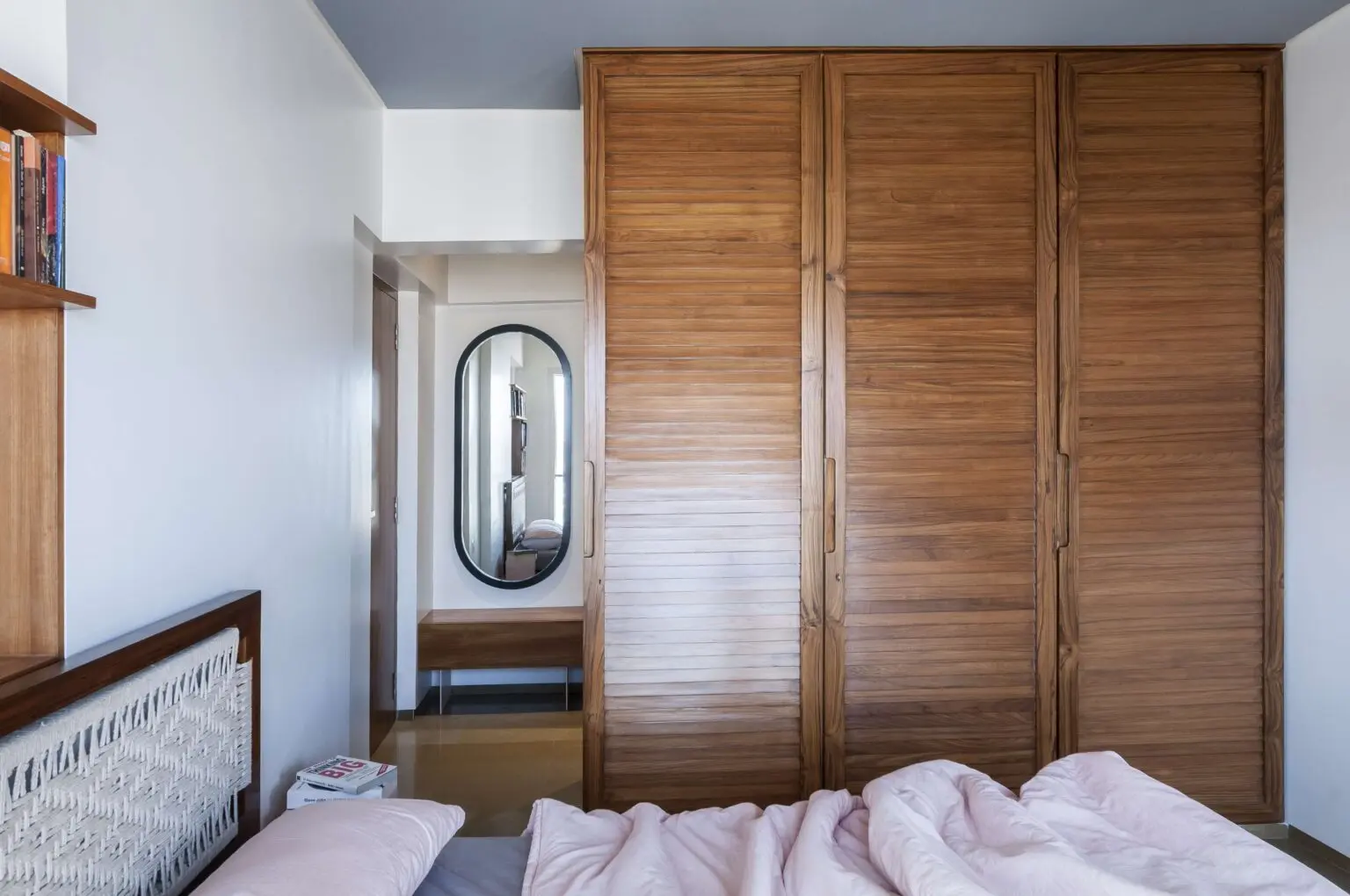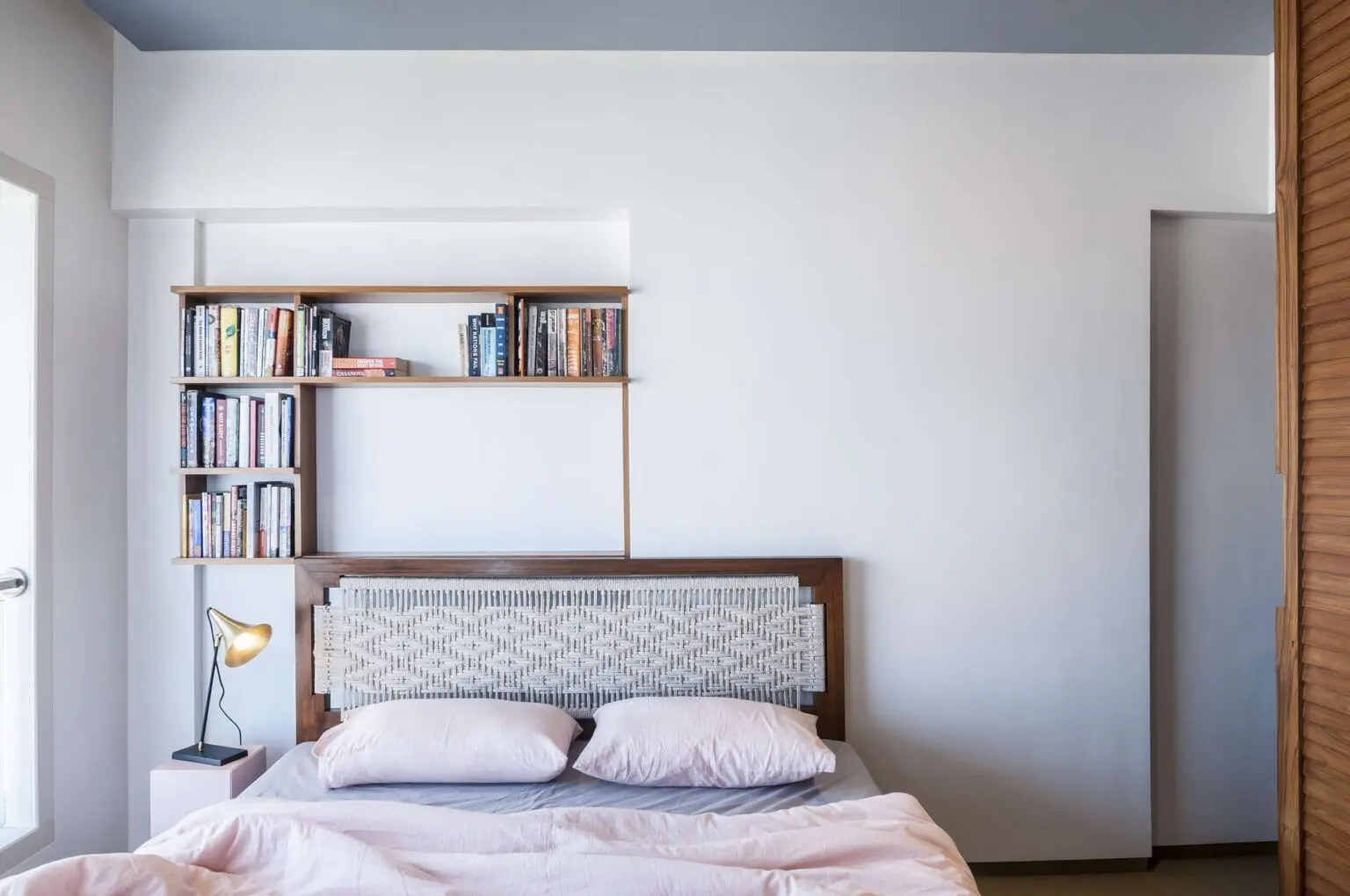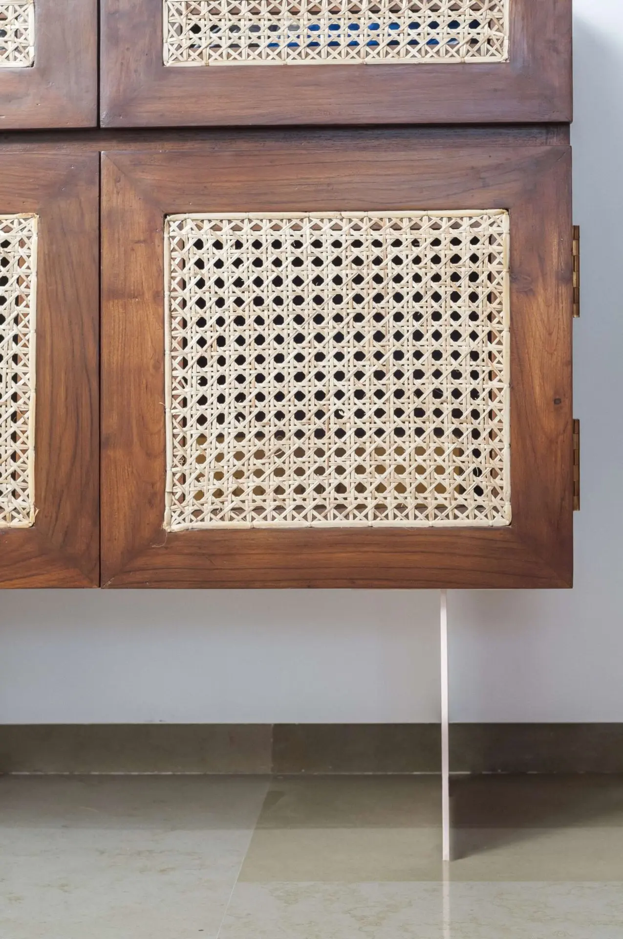Bedooms are detailed with custom made furniture including floating beds with rope and teak frame headboard, wardrobe surfaces, door handles and storage cabinets.