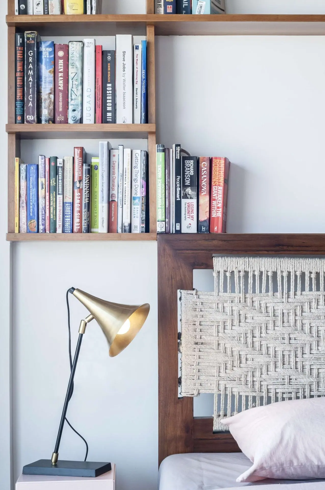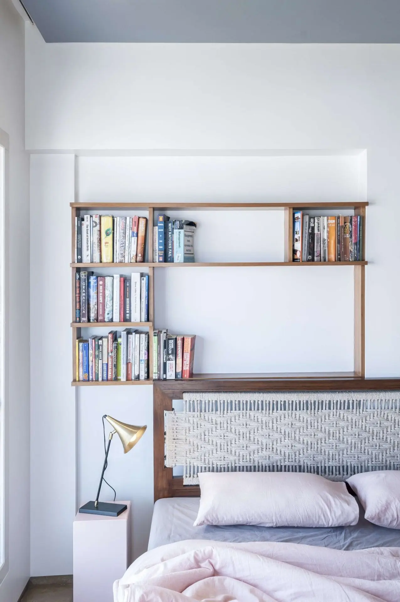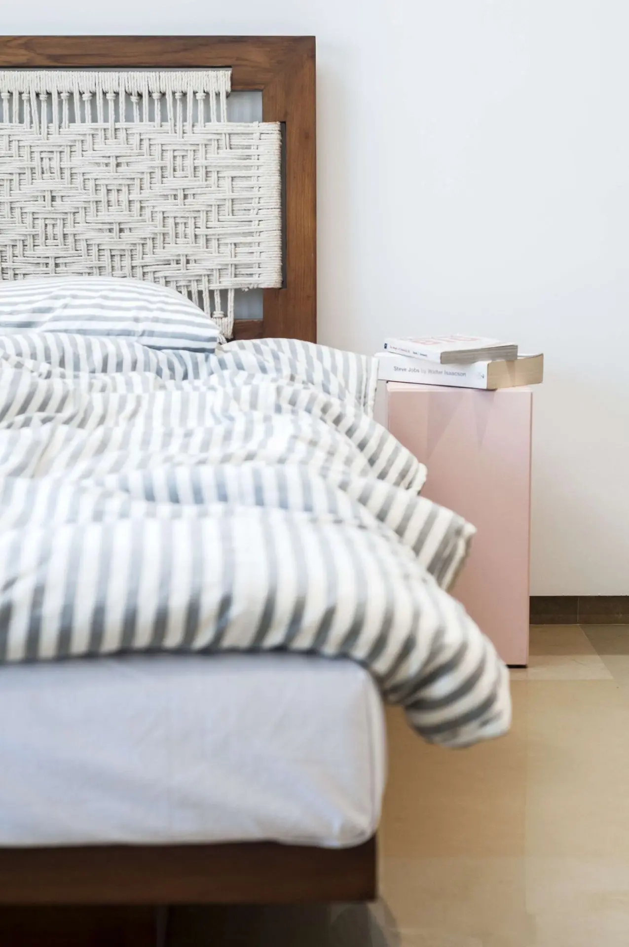 Bedooms are detailed with custom made furniture including floating beds with rope and teak frame headboard, wardrobe surfaces, door handles and storage cabinets.