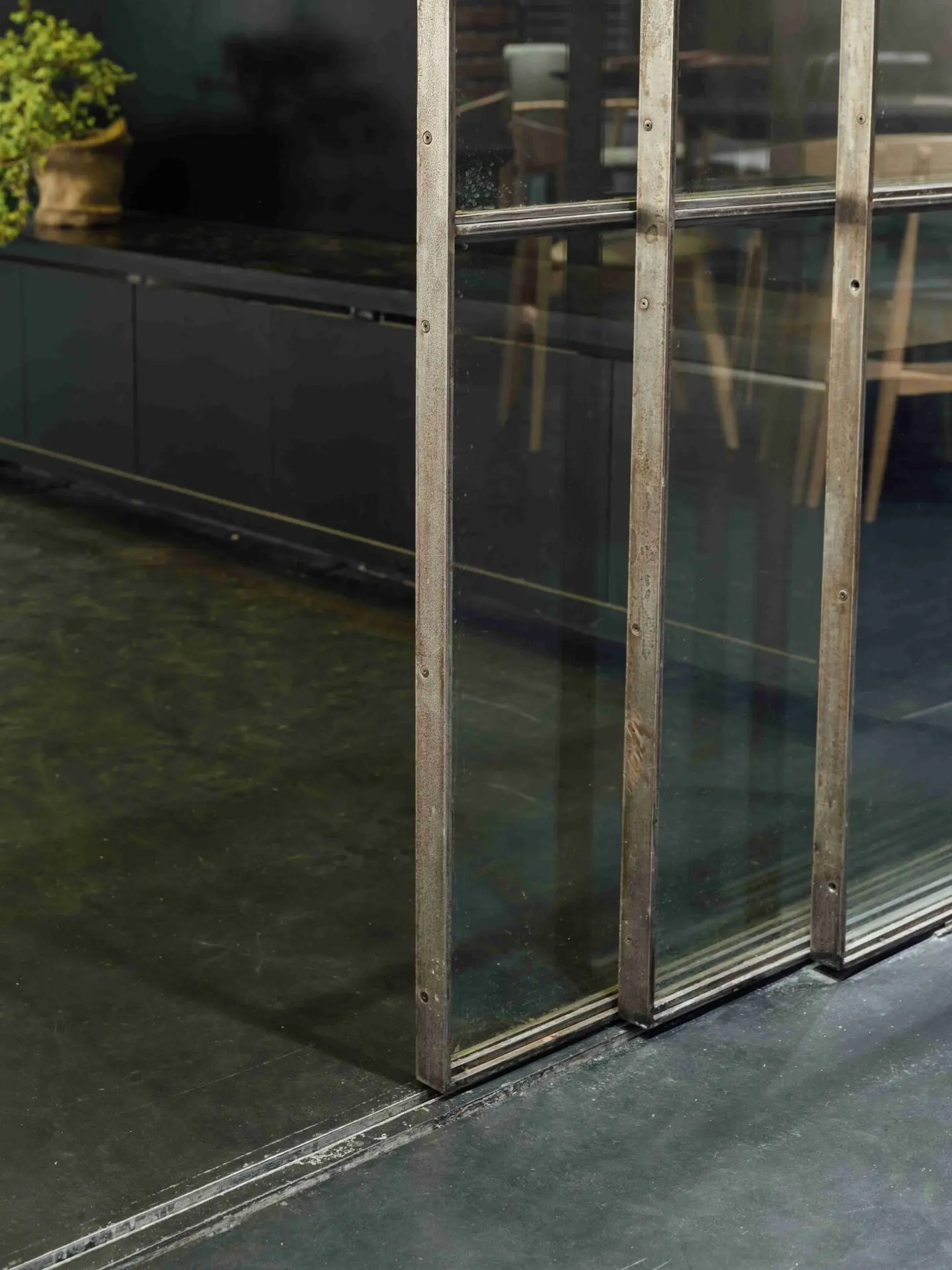 As homage to the industrial quality of the café’s ethos, the main entrance door,