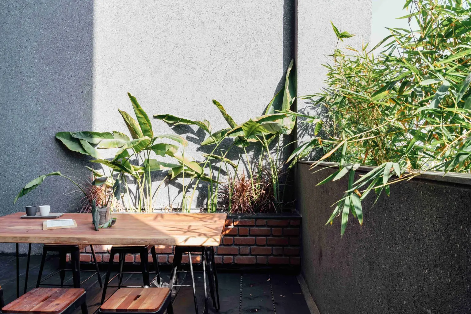 These brick-clad parapets act as informal steps to an imprompt amphitheatre, or just a cosy nook for a cup of coffee! With abundant greens sprinkled around this place, this café not only is a tribute to fresh, natural experiences, but also to the finesse of raw, contrasting materials and textures!