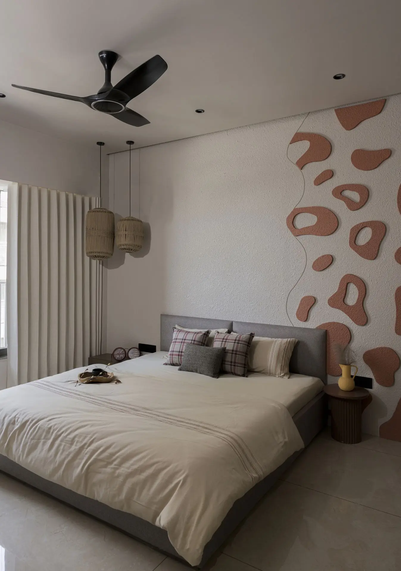 Each bedroom carries its own identity while remaining connected to the home’s overall design language. From the playful and imaginative kids’ room to the vibrant terracotta-toned bedroom and the calmer, more grounded master space, every room reflects a thoughtful balance of personality and restraint. Together, they complete Mud Bubble as a home shaped by earth, guided by craft, and designed as a living experience rather than just an interior.
