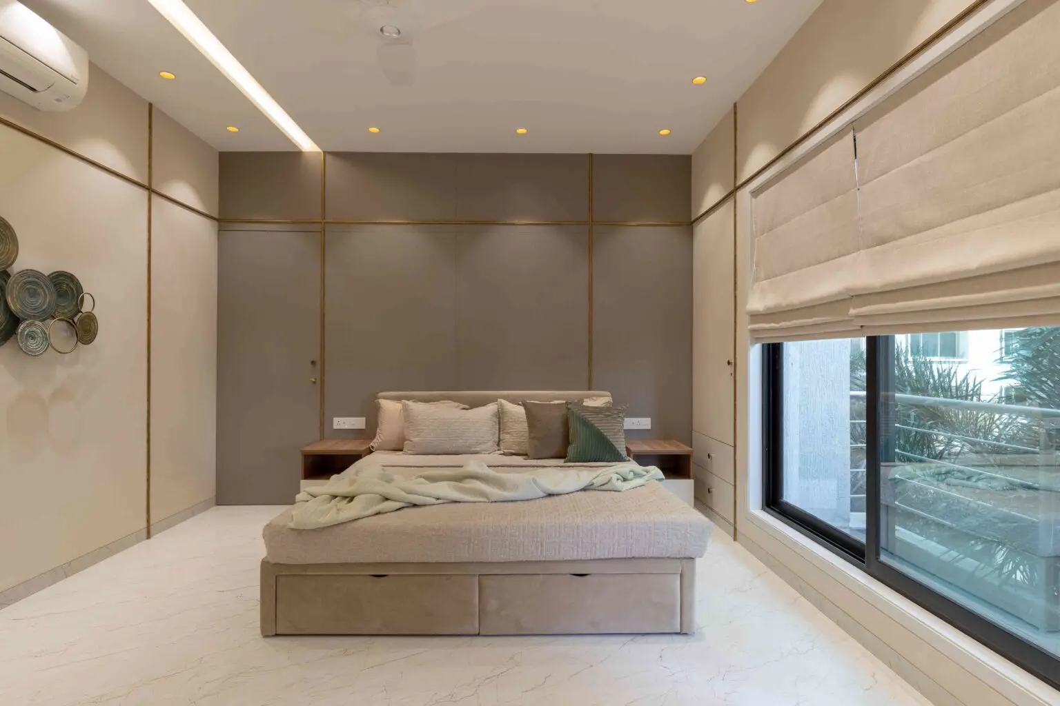 The grandparent’s room follow a minimalistic and serene approach making the room to be tranquil and tender.