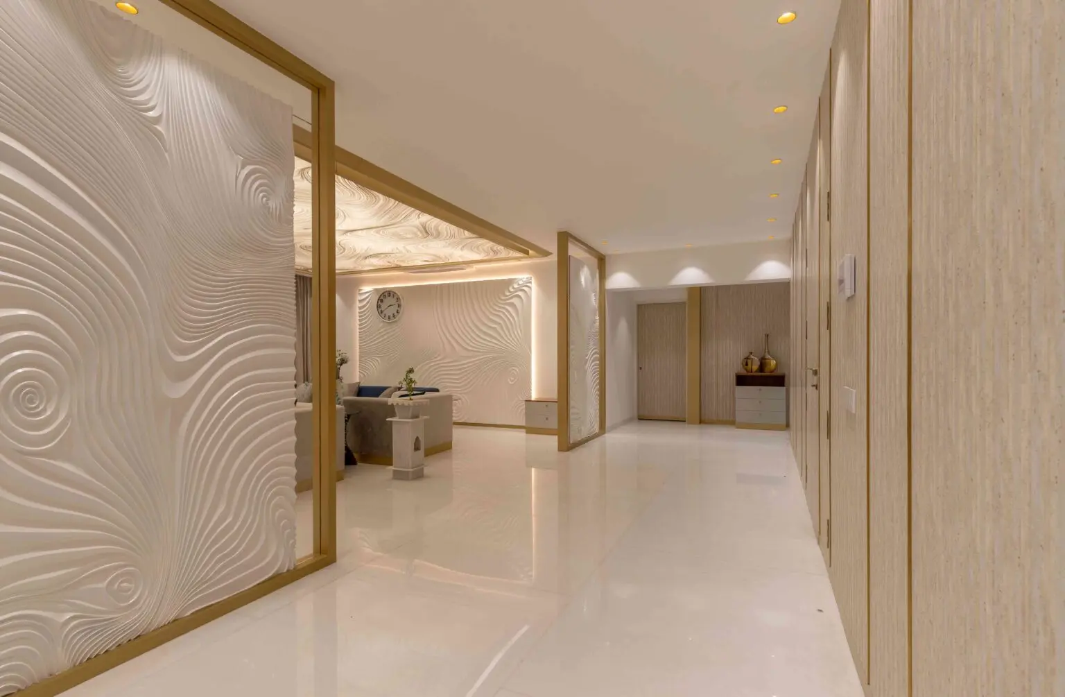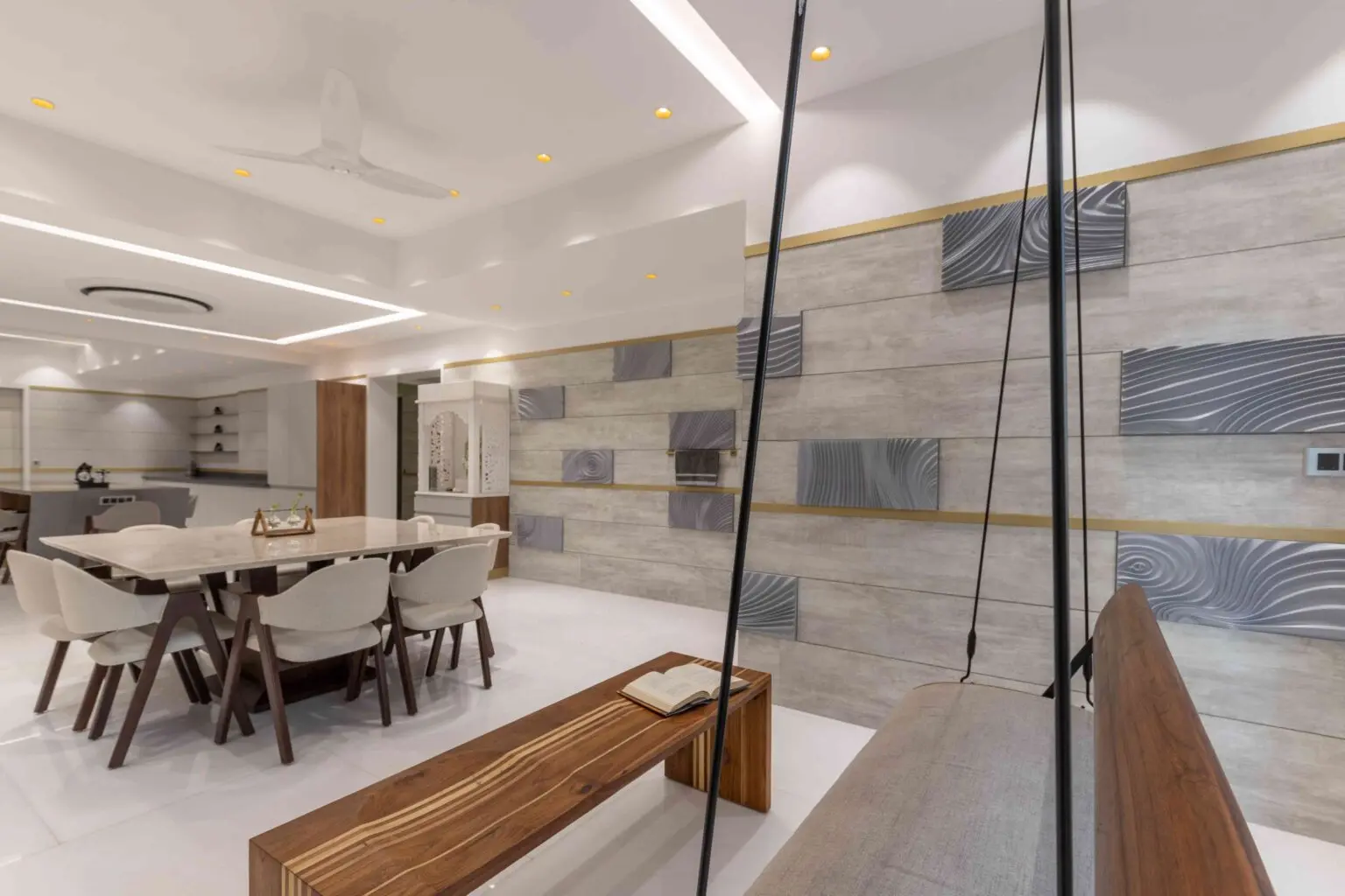 This 4 BHK apartment offers one of its kind aesthetics with extensive material exploration and extreme craftsmanship demanding paramount eye for detail from the designers.