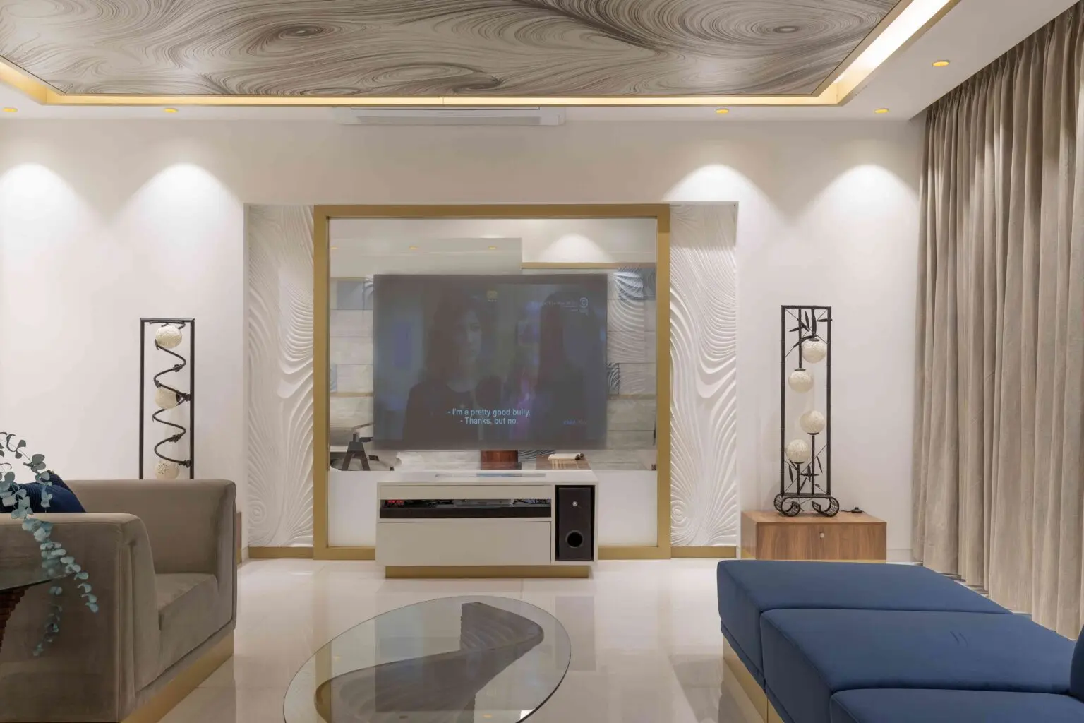 The TV wall imparted a challenge in itself with the clients wanting to take it to the next level. So they got done with the TV altogether by using a This was achieved on a [Material used] making it a two way TV unit.