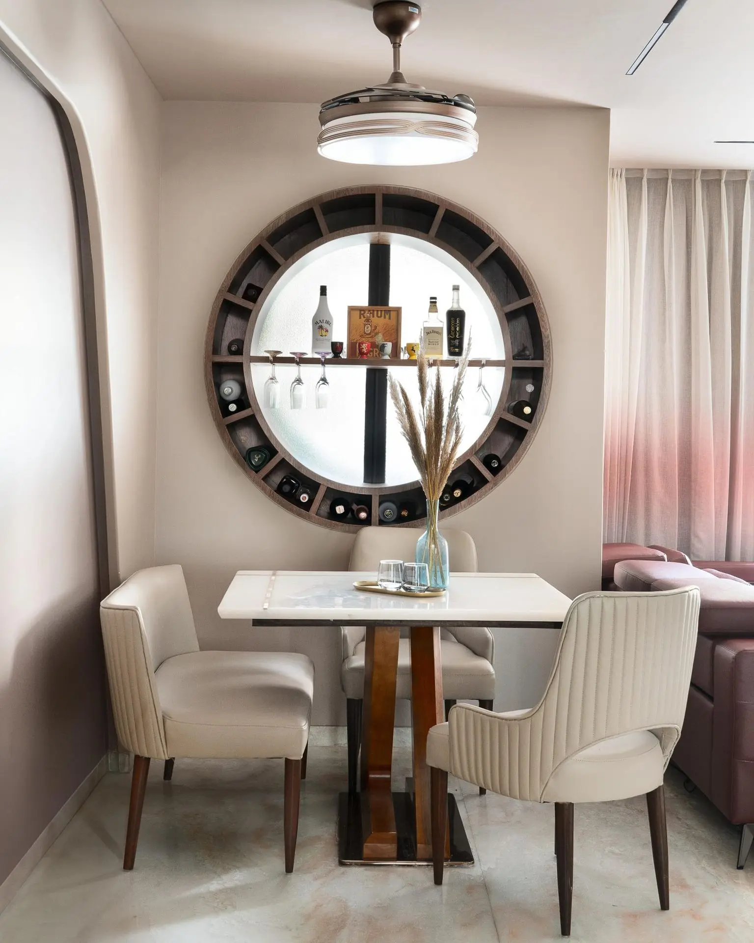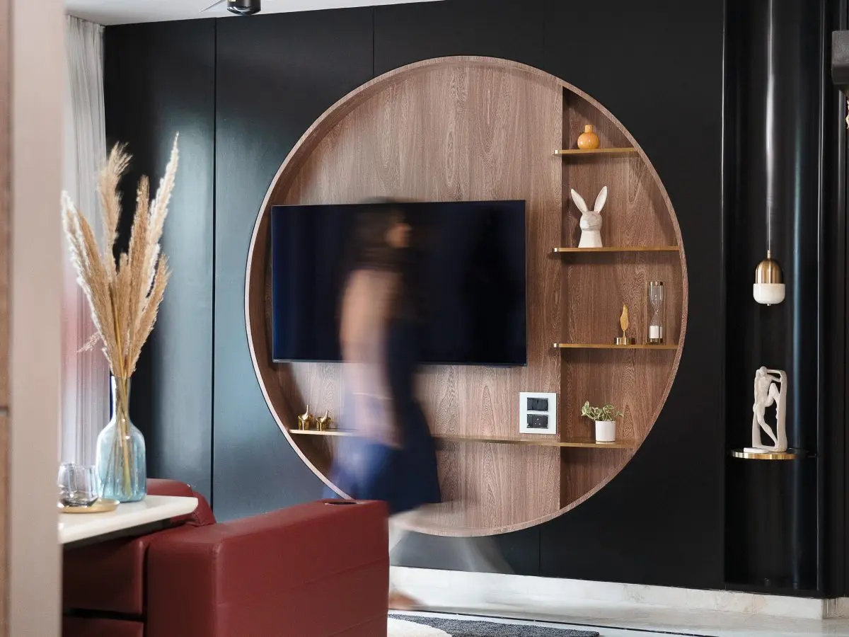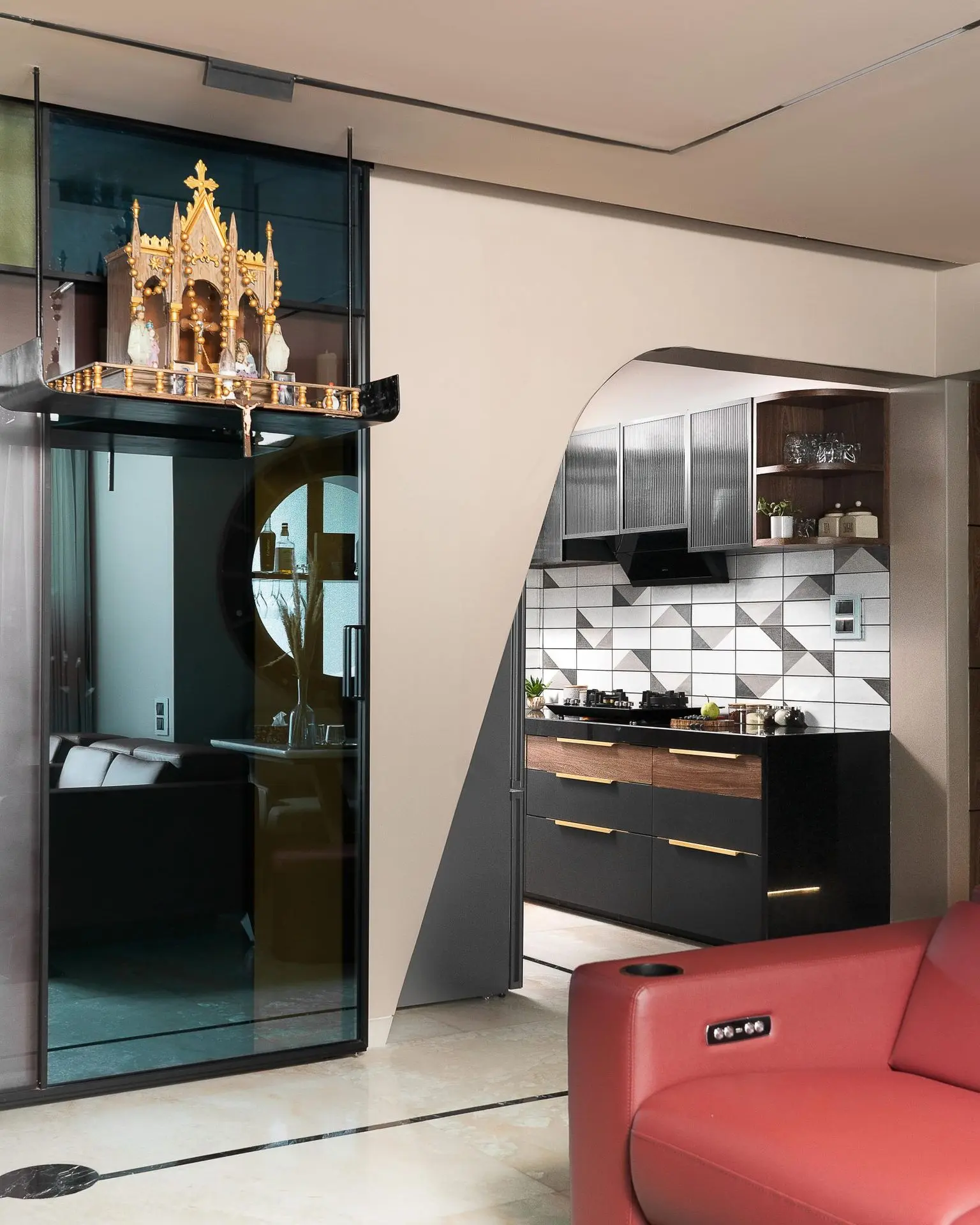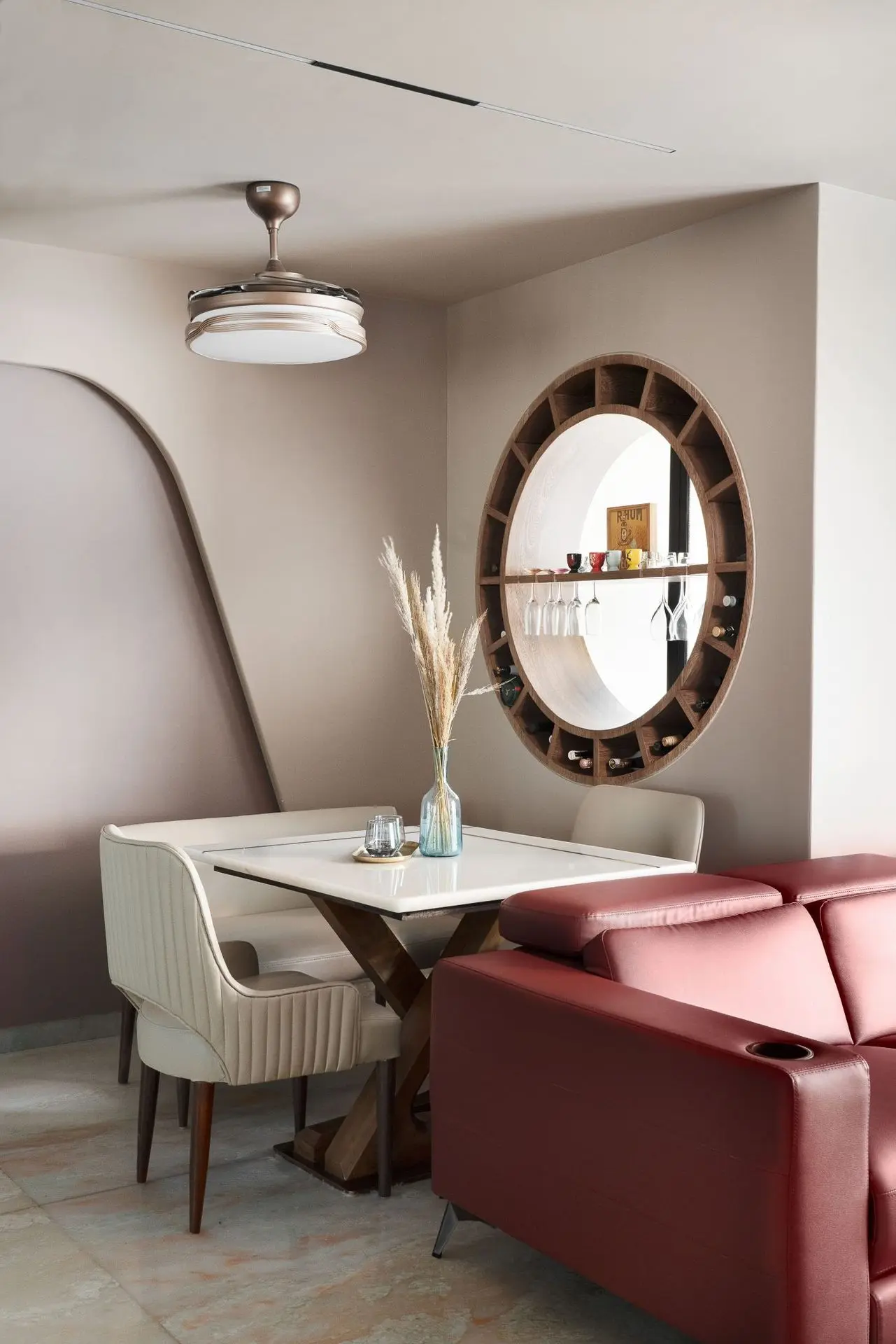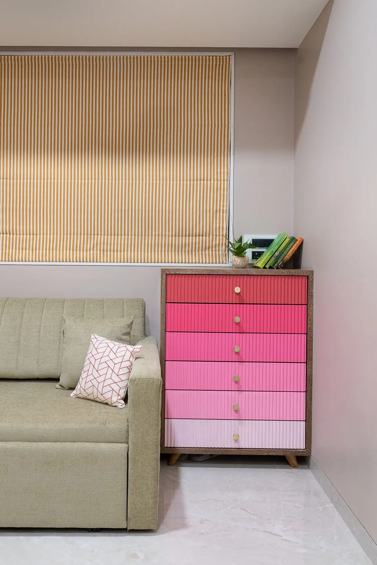 This 2 BHK abode embraces a bold, maximalist pop aesthetic, enriched by striking hues and meticulously arranged geometric compositions.