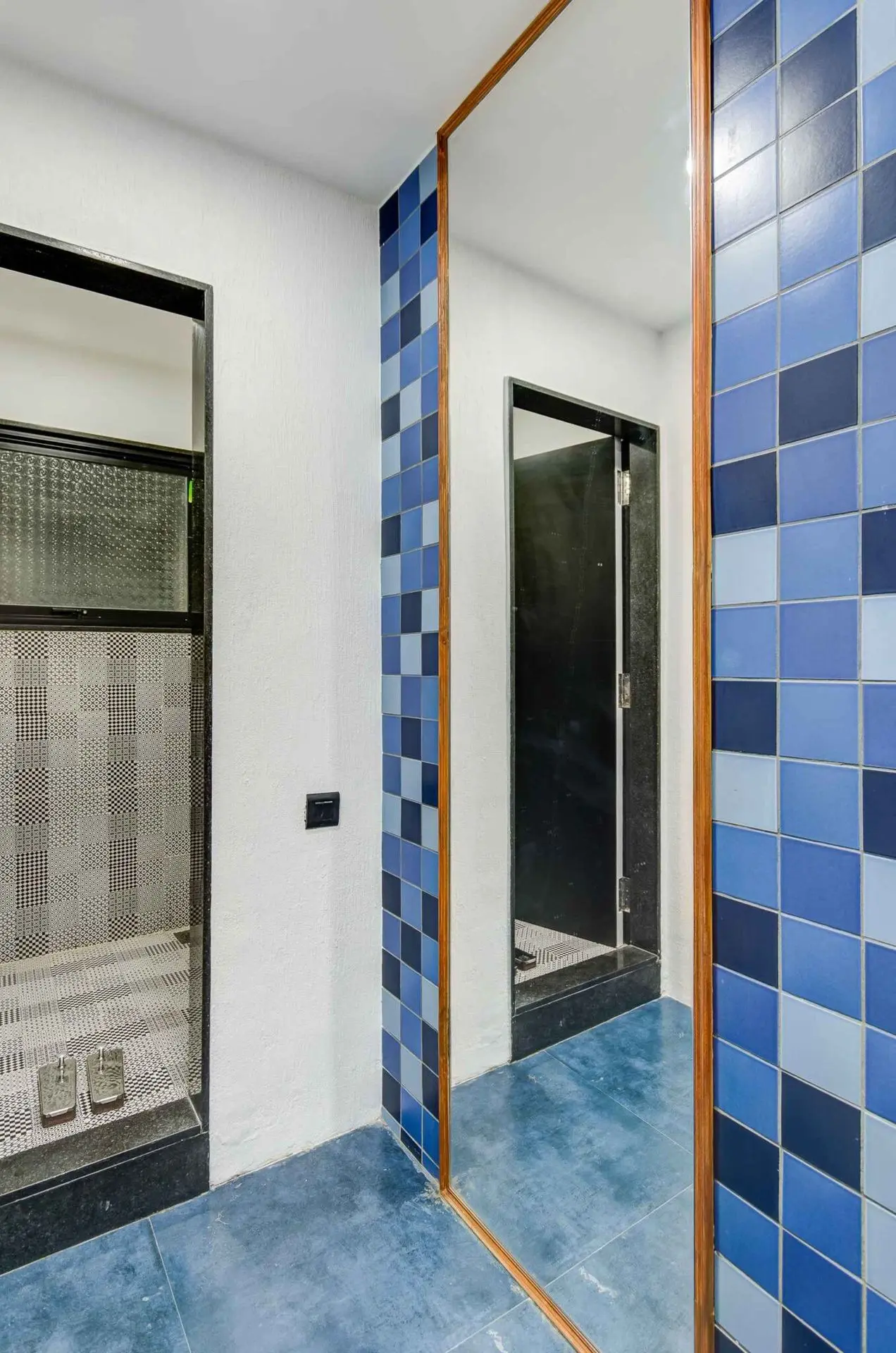 Blue checks mosaics was used in pantry along with dark blue flooring which in-turn converts a feel of space of pantry to as changing room where bride don’t feel as a separate mundane space different to showroom.