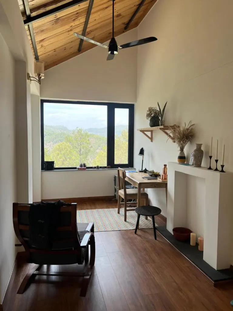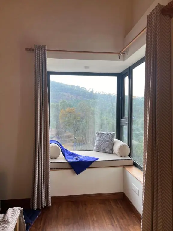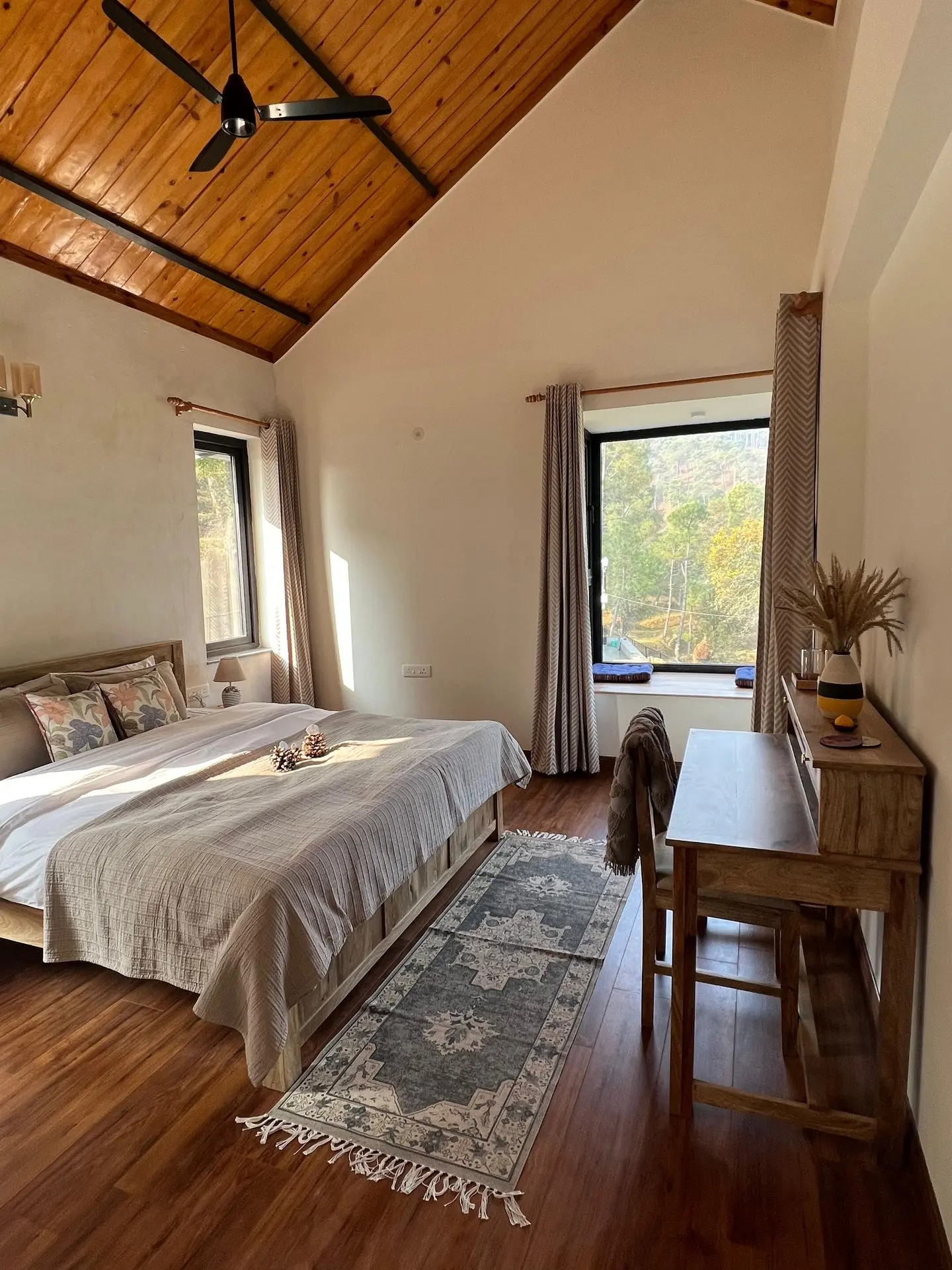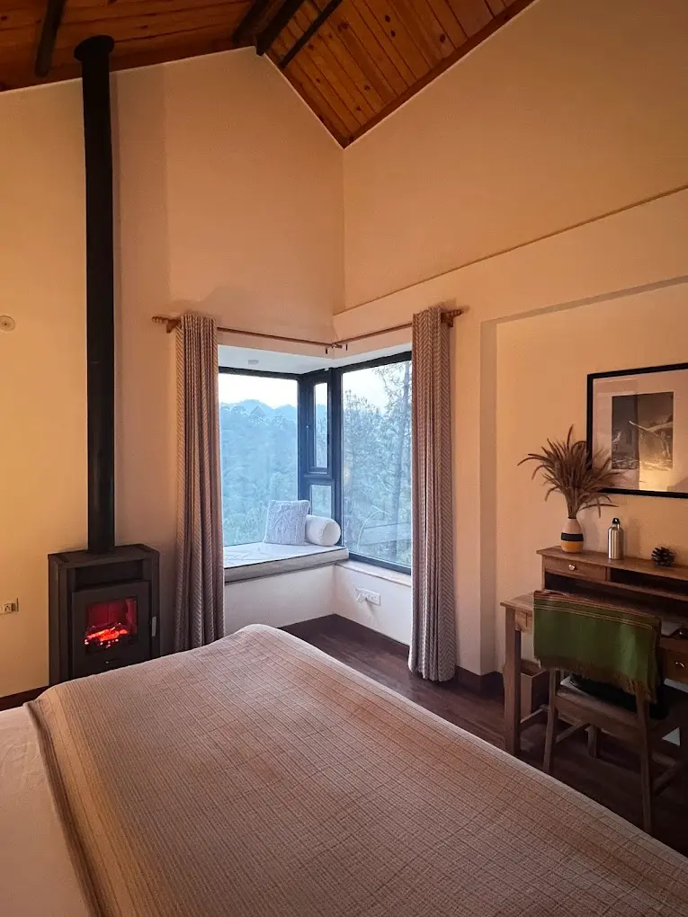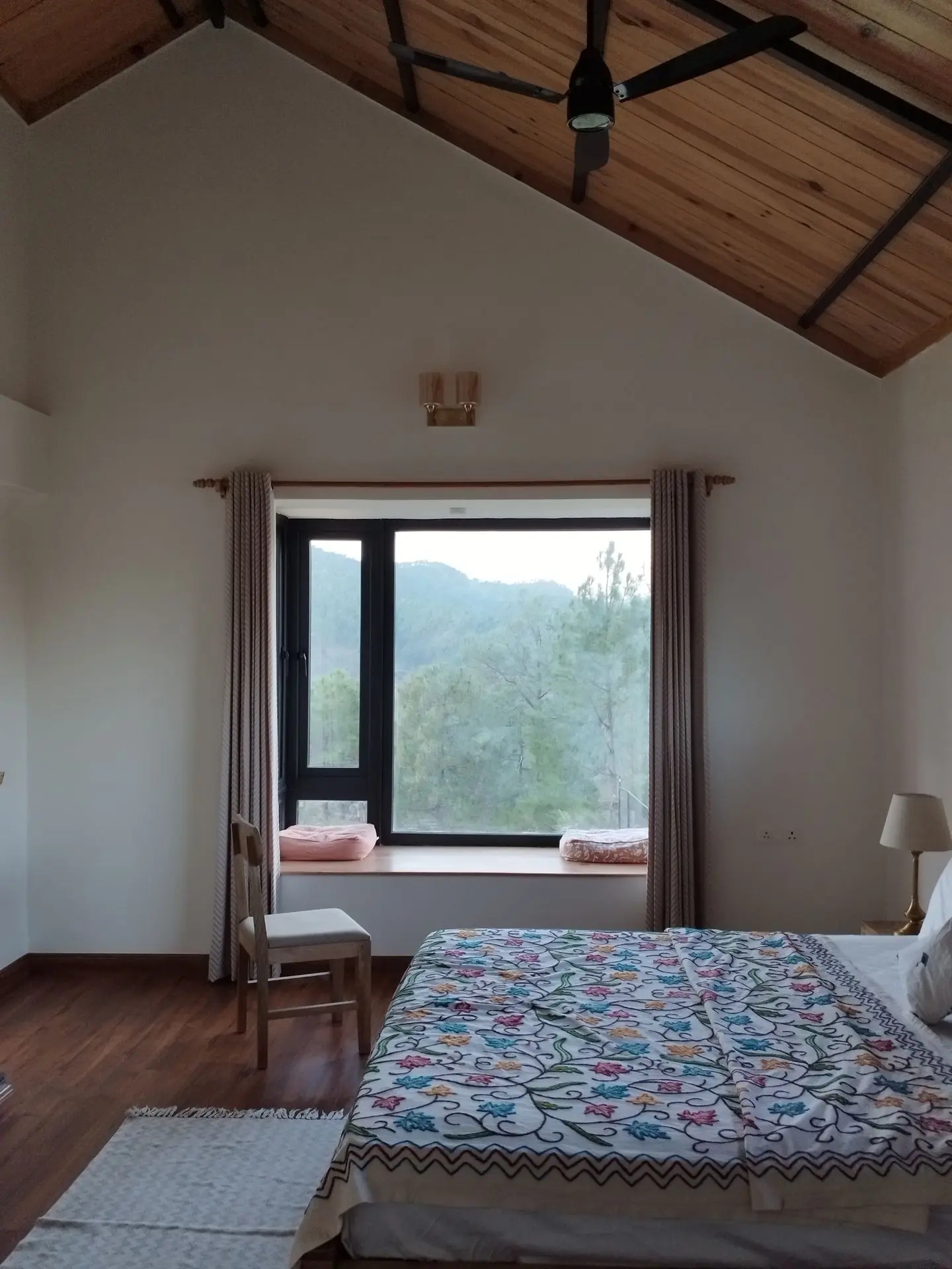 Bay windows in the bedrooms create intimate corners for relaxation while framing expansive views of the landscape. These spaces invite residents to slow down and engage with nature through everyday moments of rest and reflection.