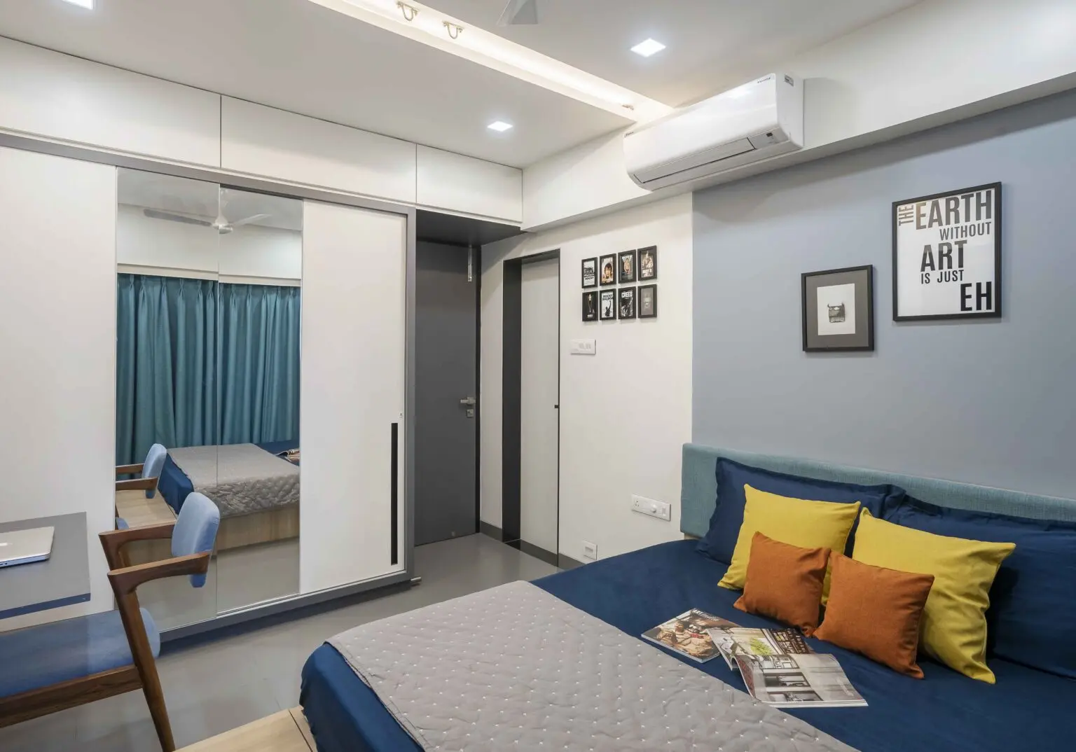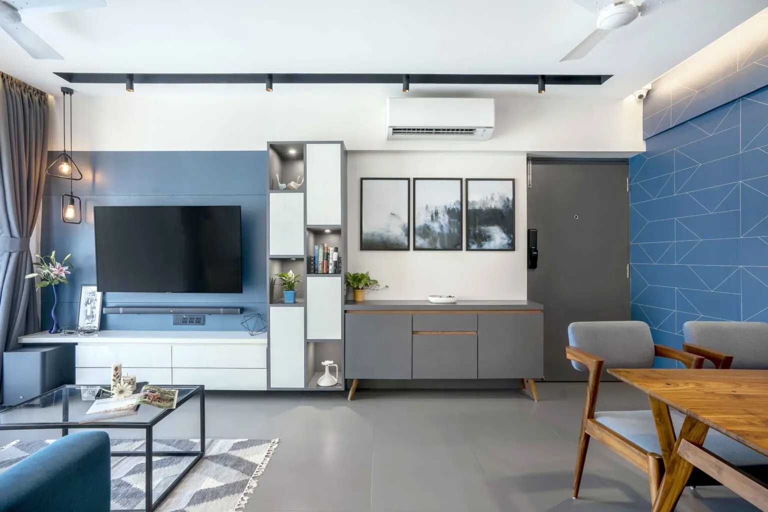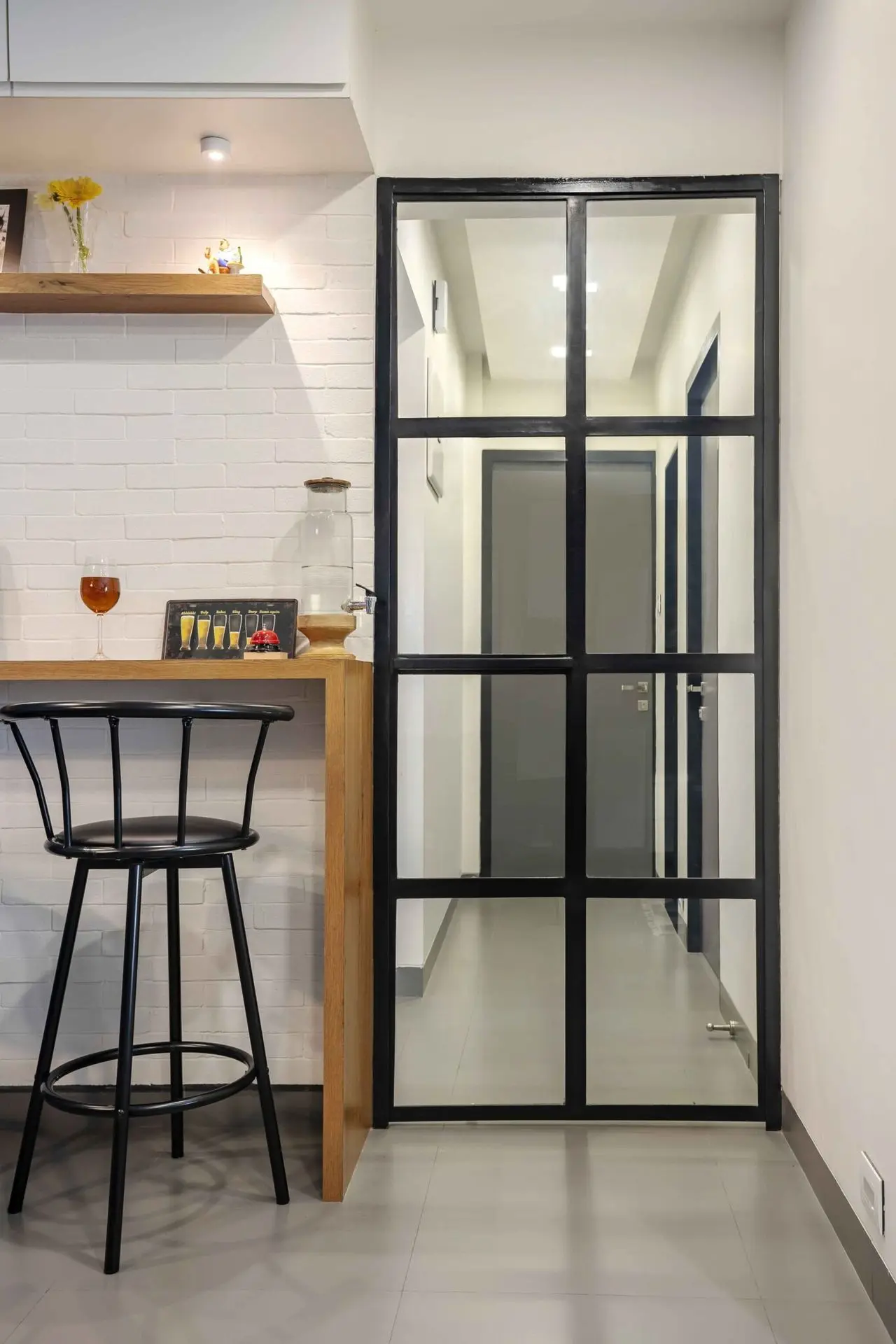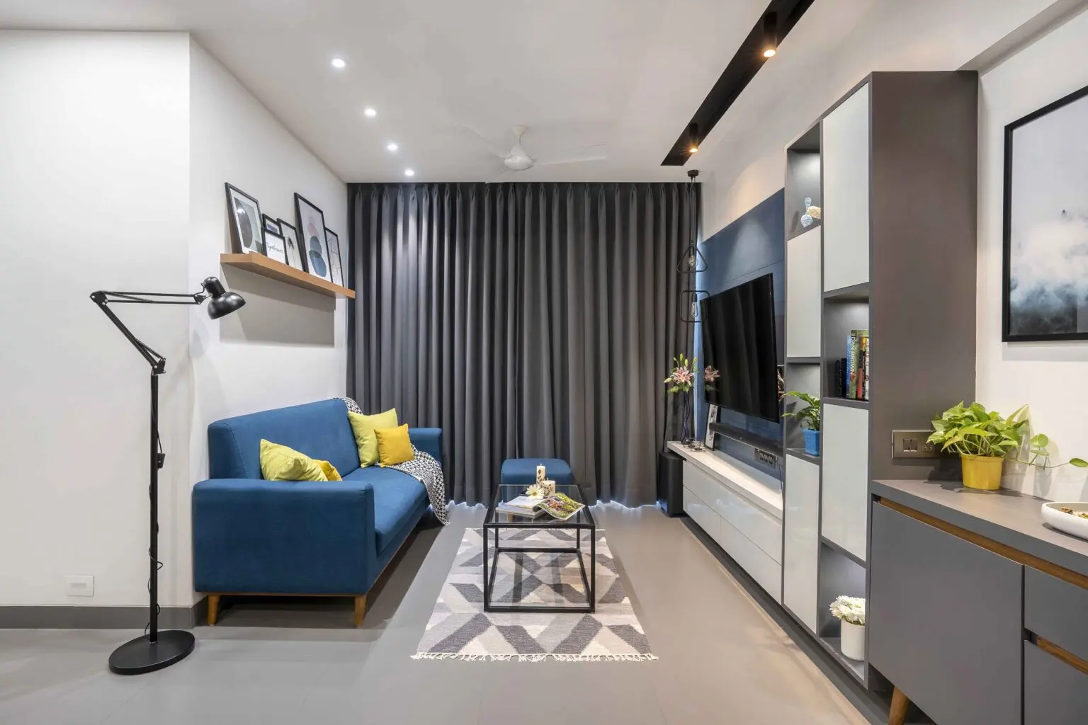 Our idea was to make the tight spaces in the 2BHK look spacious and open by employing a uniform color palette which envelopes the entire house.