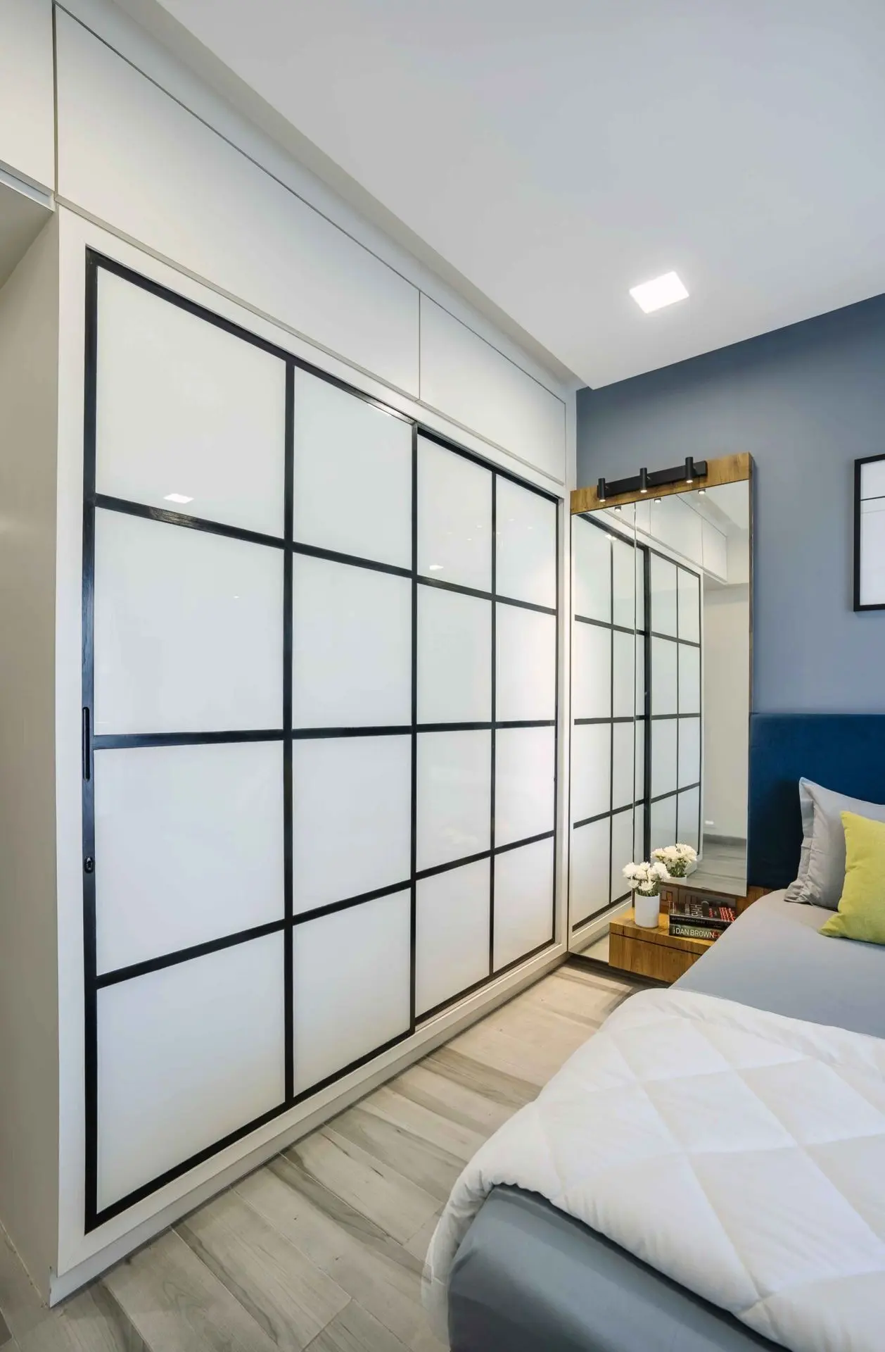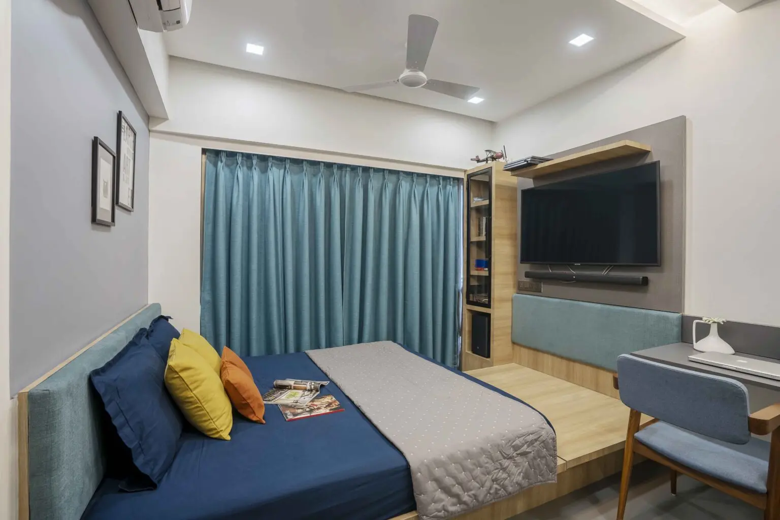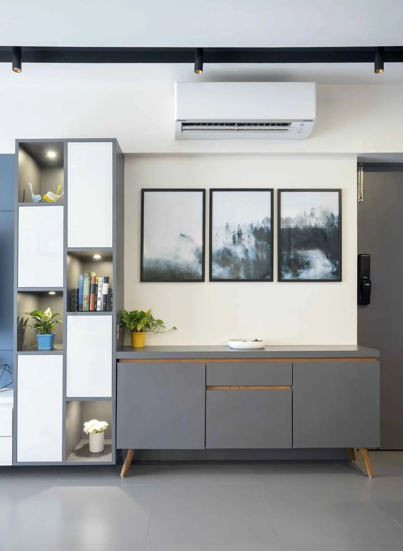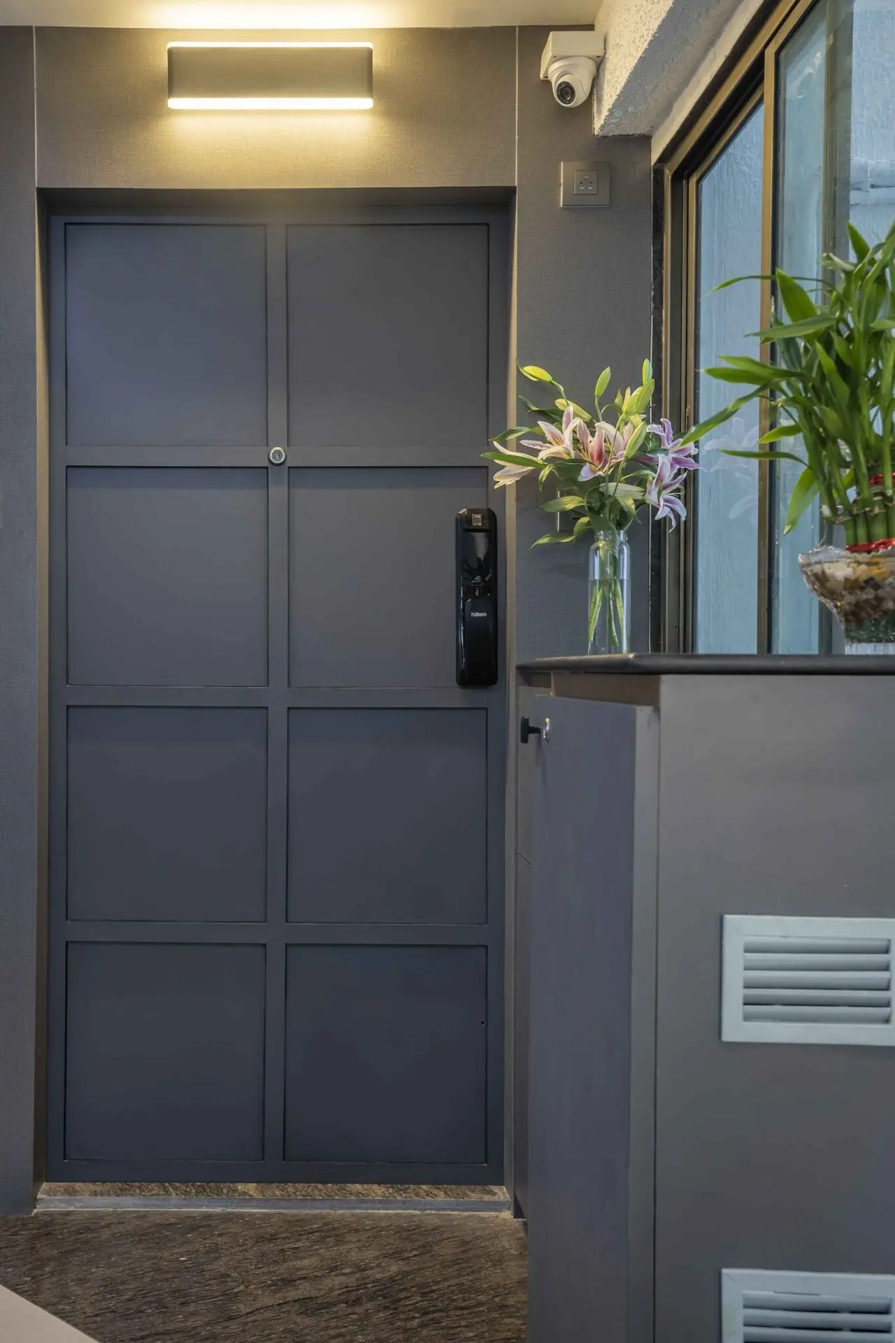 Our idea was to make the tight spaces in the 2BHK look spacious and open by employing a uniform color palette which envelopes the entire house.