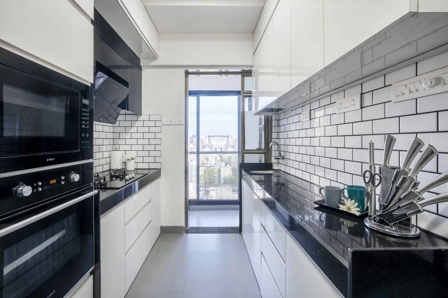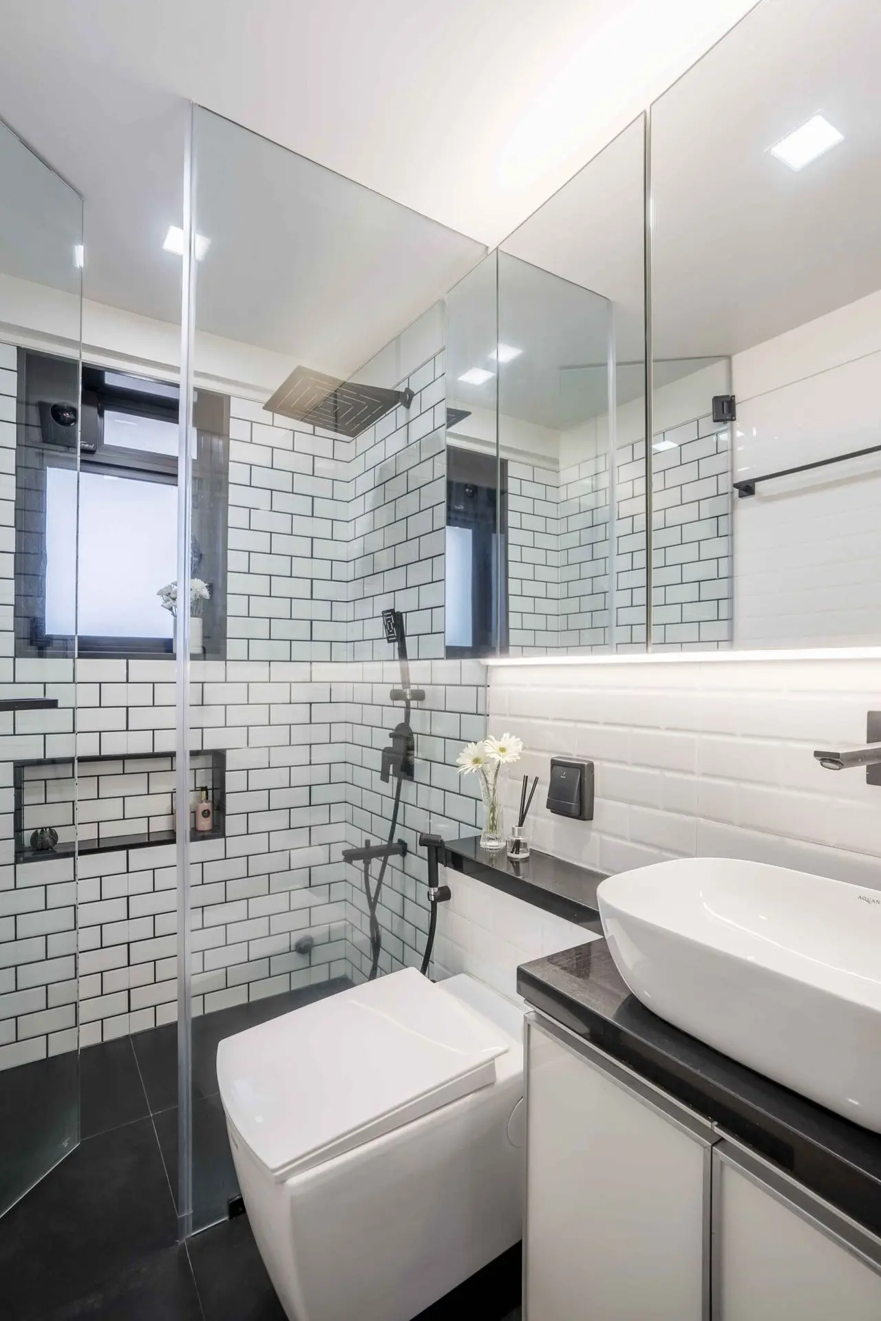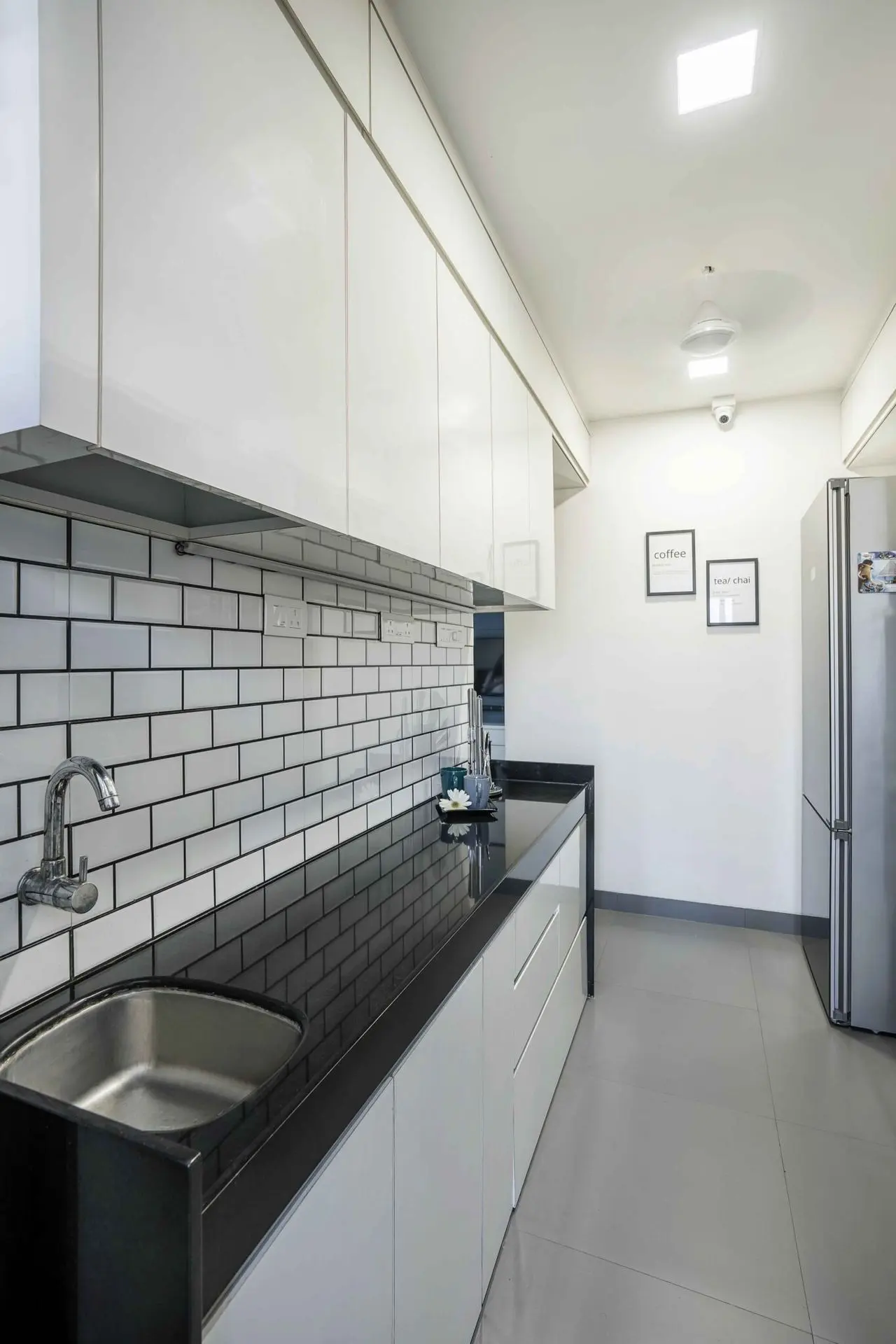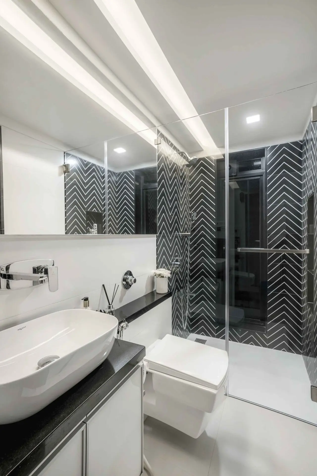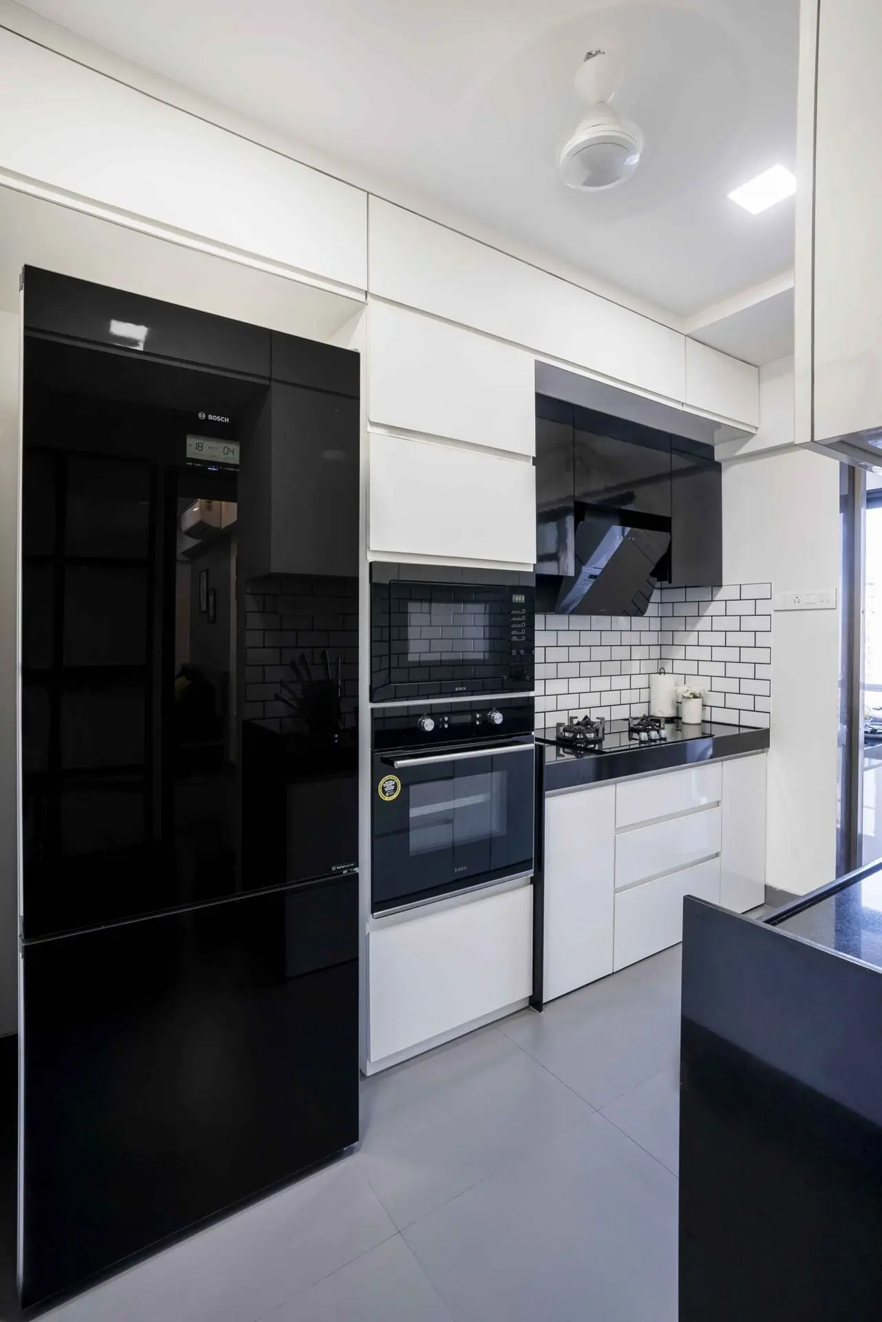 We made the decision to keep all 3 functional spaces, the kitchen and the 2 washrooms purely black and white, making us take the idea of monochrome living to its fullest.