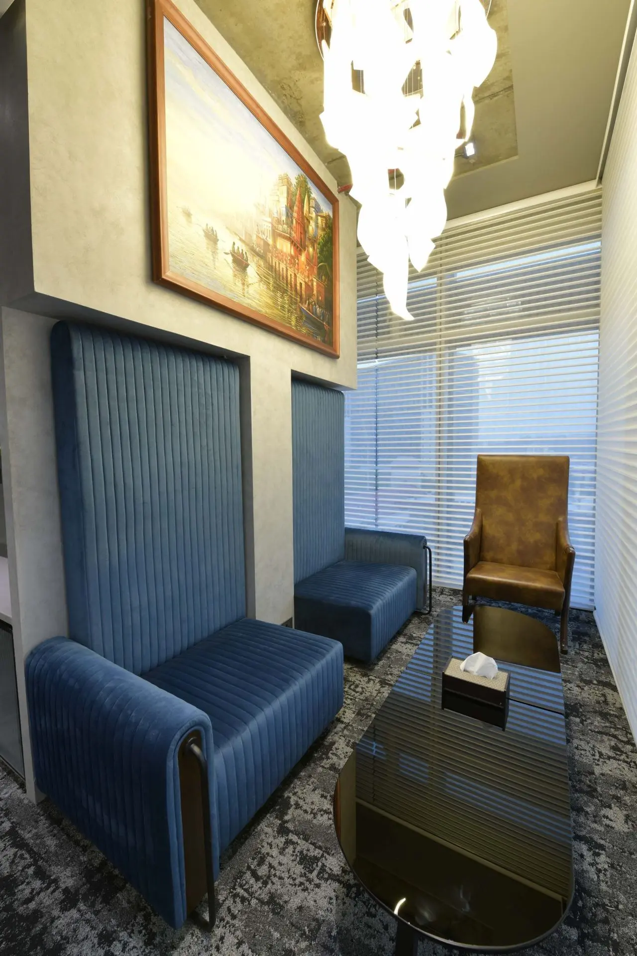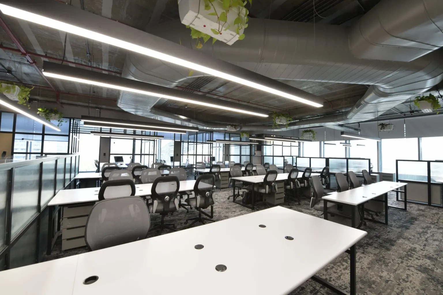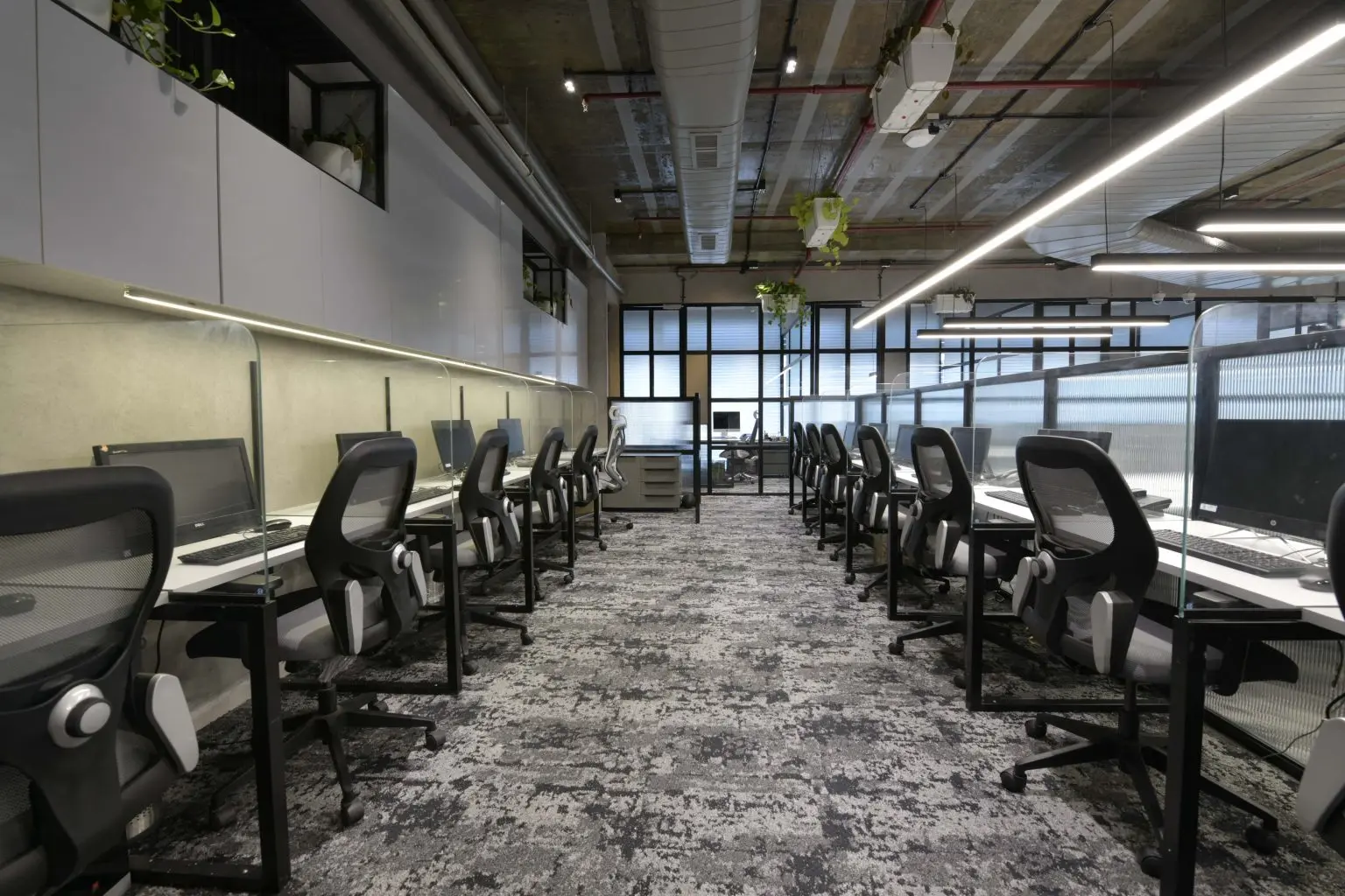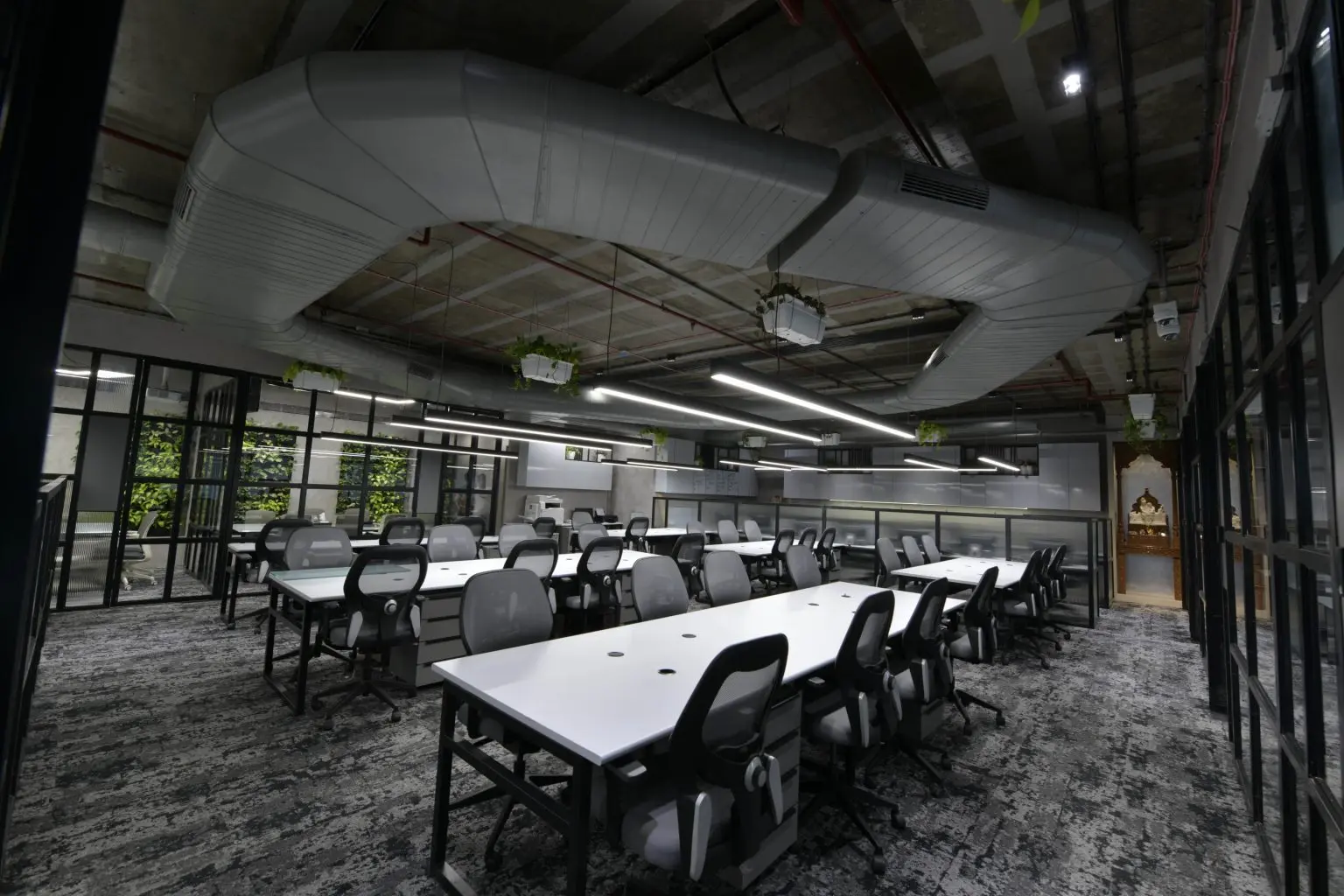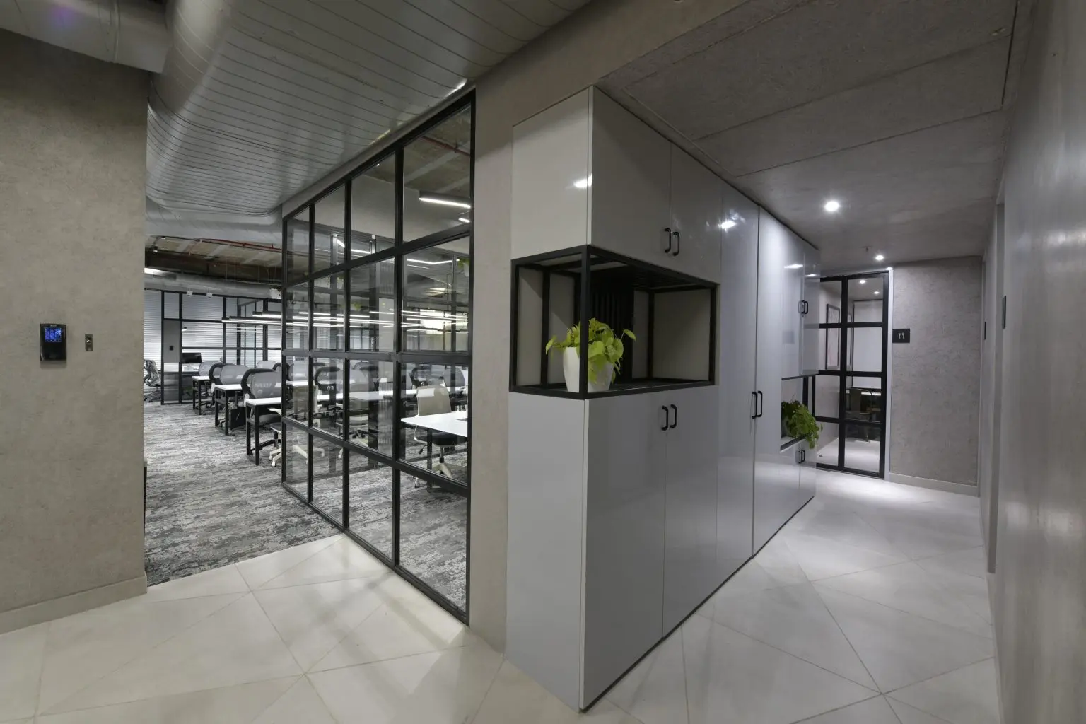 Lounge areas are casual zones with vertical gardens and custom lighting that create a lively atmosphere. These spaces offer employees a place to relax, interact, and stay connected beyond their desks.