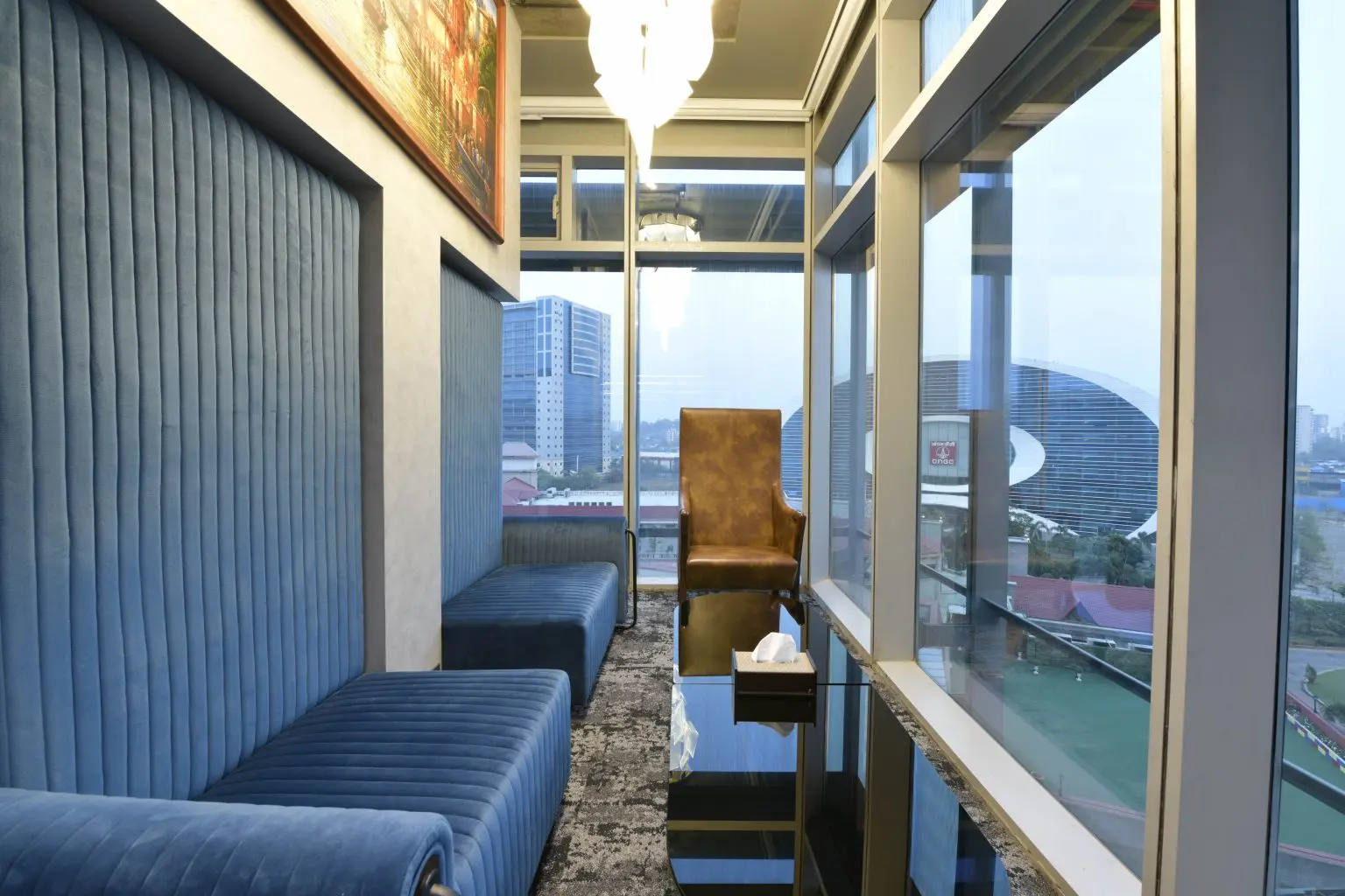 Corridors and transition zones use glass partitions and distressed concrete finishes to maintain the open feel. Vertical gardens along the paths add life, making circulation spaces feel refreshing rather than closed-off.