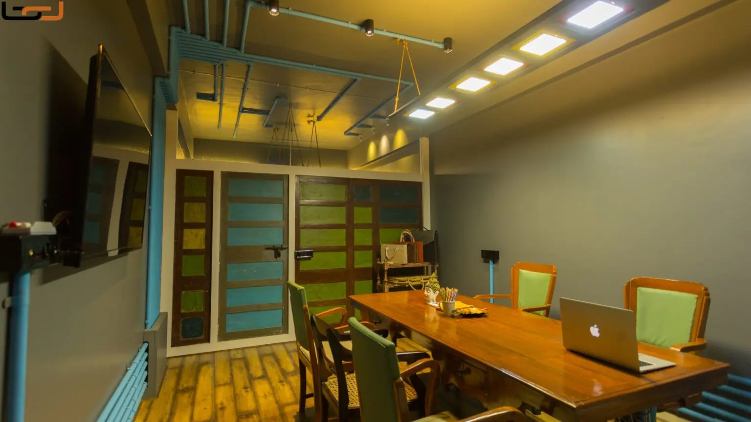 We accepted challenge and decided to exposed, main nerves of inner core (Electrical PVC pipes) as branch of Banyan Tree, which roots extends into Ceiling and further extend into hanging roots in form of hanging lights.