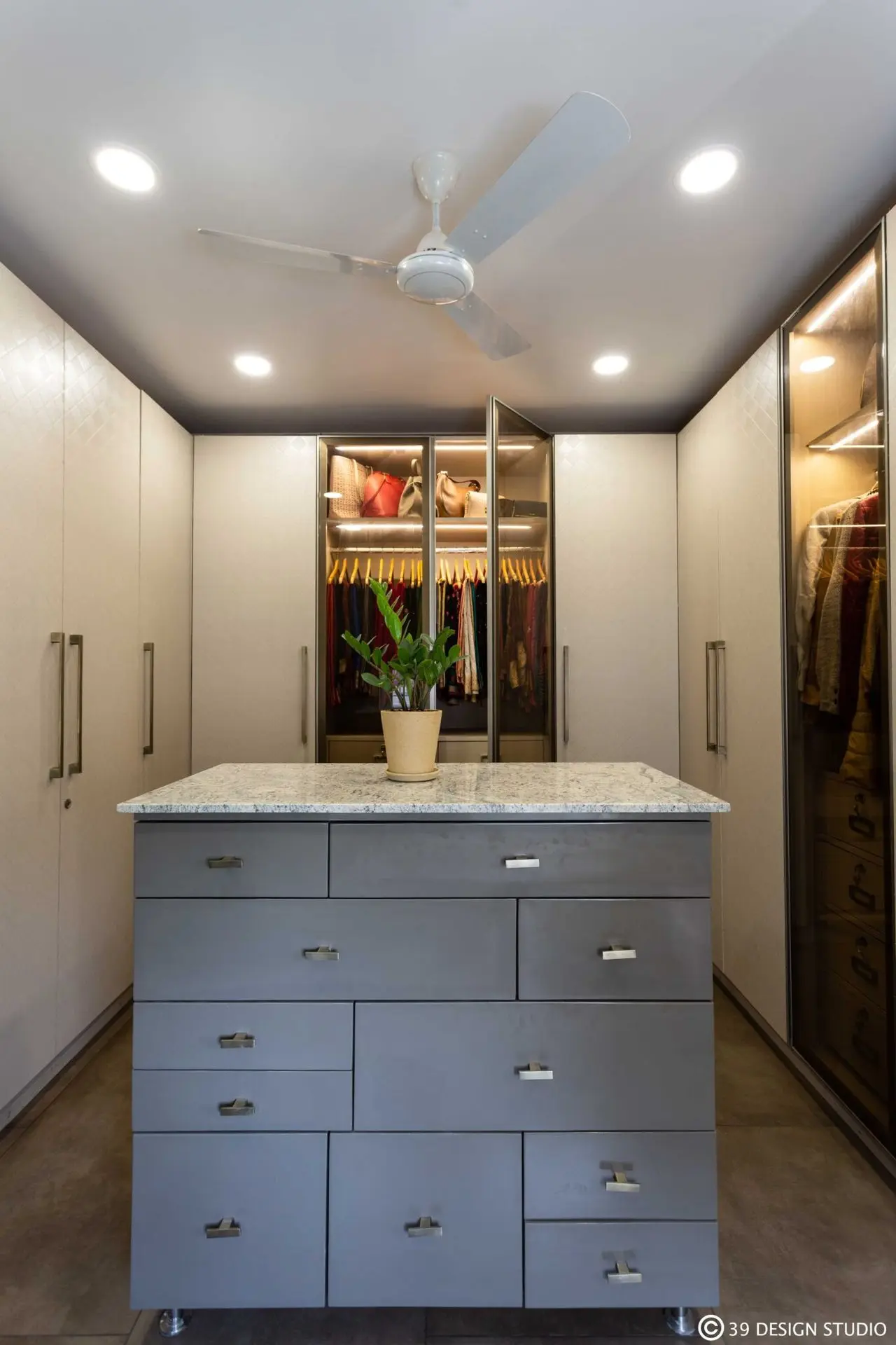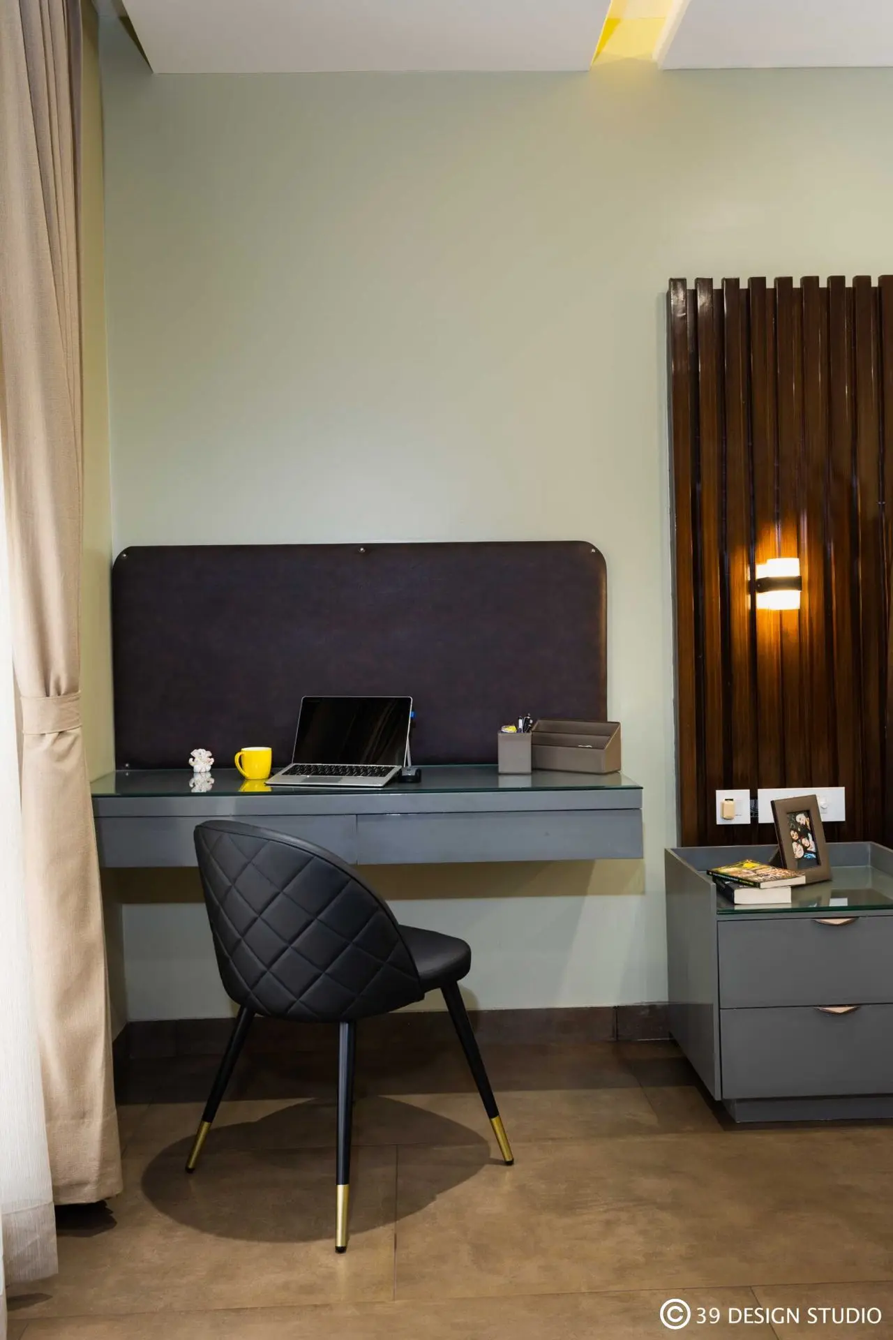 The bedroom is a cocoon of comfort despite being generously proportioned with large walk-in closet and luxurious bathroom. But it is the bedroom that bring out the pastiche aesthetics of the villa, one of the most spacious rooms in the house, it mimics the grandeur of a high-end hotel suite without compromising on the need for a warm, homely ambiance.