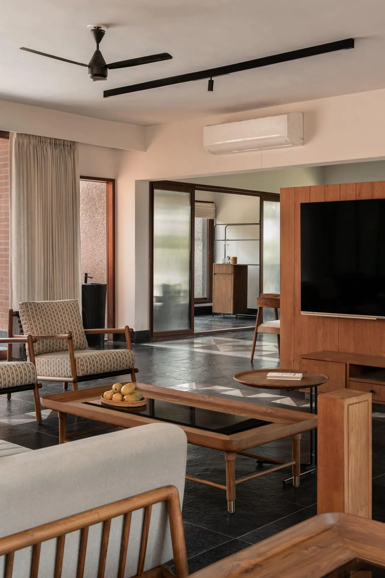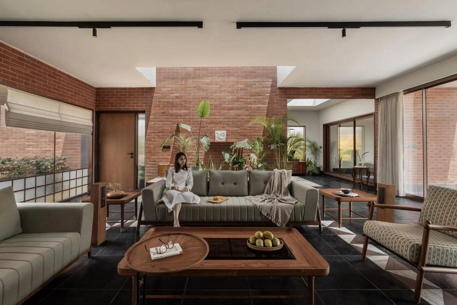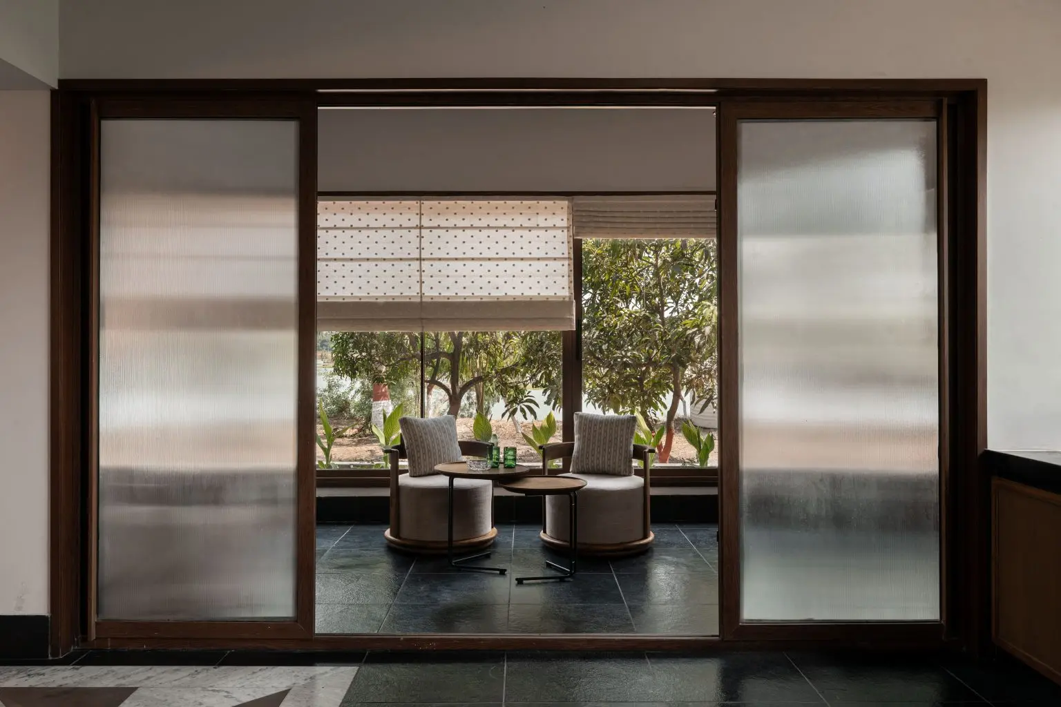 A key feature of Vishraam is its gazebo, perfectly positioned by the river to amplify the experience of the outdoor space. The interplay of greenery, openness, and warmth transforms this home into a tranquil retreat, fulfilling the client’s vision of living in harmony with the natural environment.