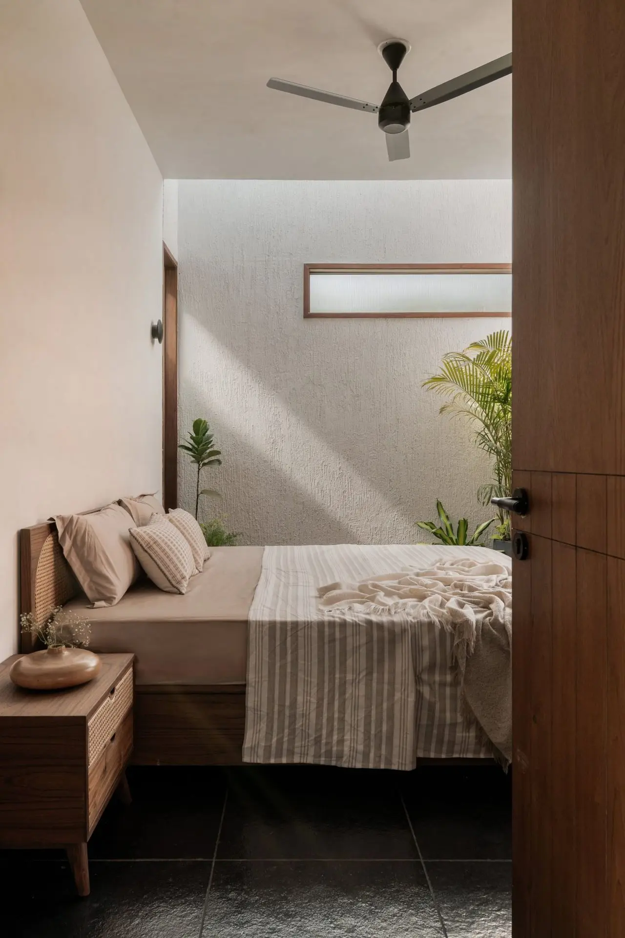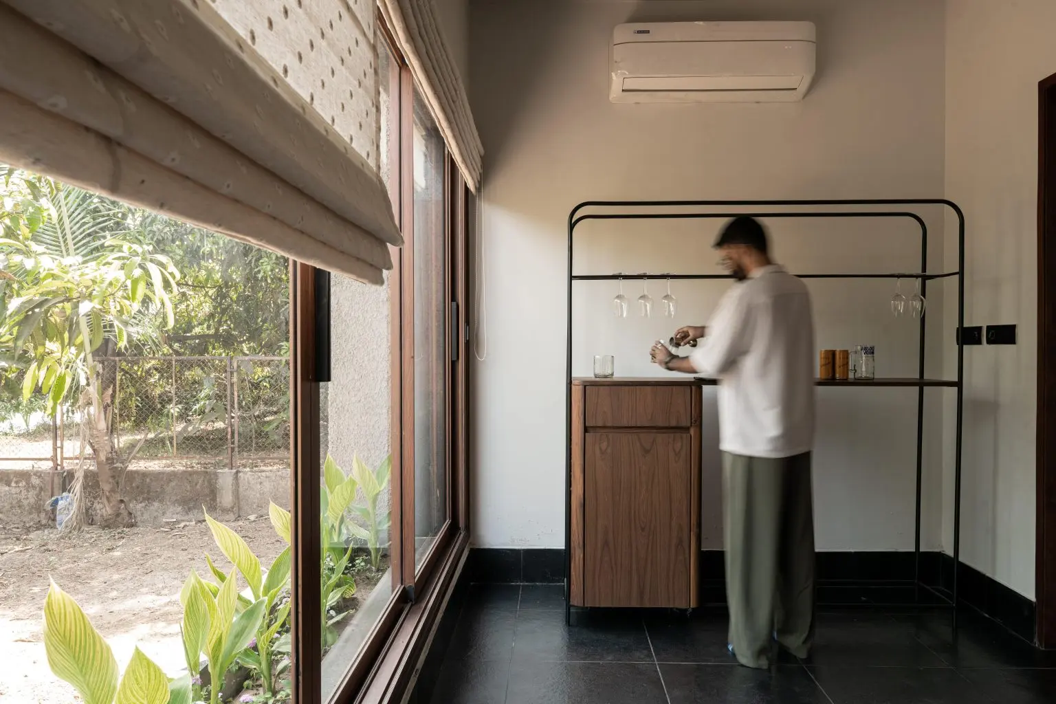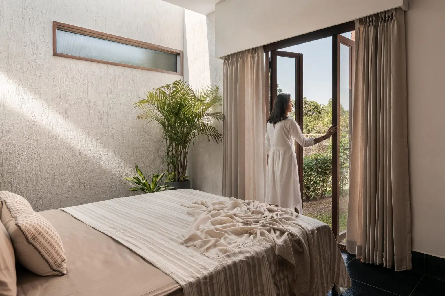A key feature of Vishraam is its gazebo, perfectly positioned by the river to amplify the experience of the outdoor space. The interplay of greenery, openness, and warmth transforms this home into a tranquil retreat, fulfilling the client’s vision of living in harmony with the natural environment.