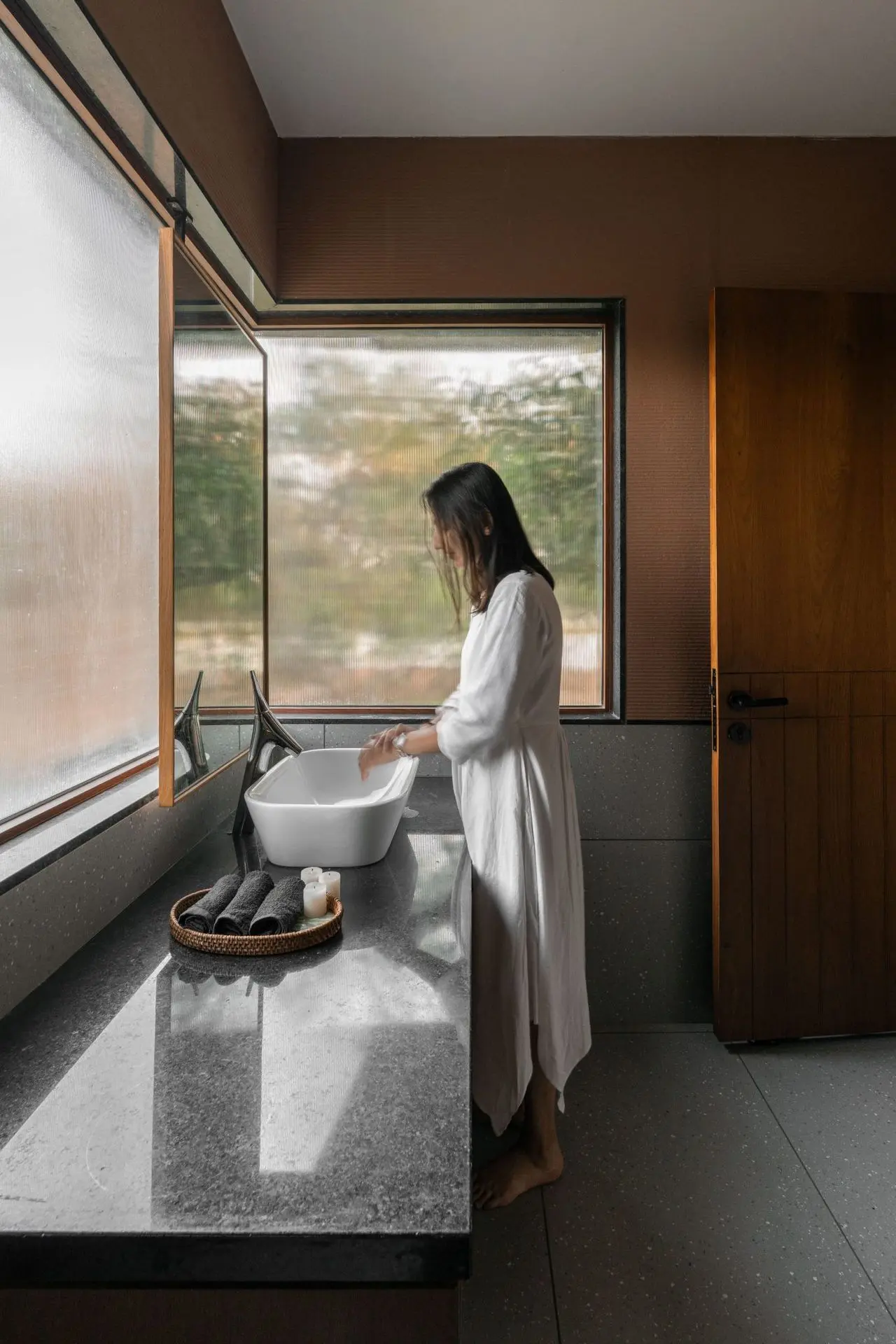 Through meticulous site planning, the structure’s layout aligns parallel to the riverbank and the site boundary, this maximizes river views and creates a seamless visual and physical connection to the natural surroundings.